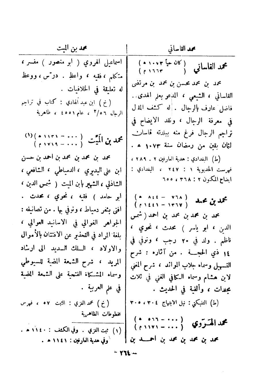 ولد في 20 رجب، وتوفي في 14 ذي الحجة من آثاره: شرح التسهيل وسماه جلاب الموائد، شرح المغني لابن هشام وسماه الكافي الغني في ثلاث مجلدات، وألفية في الحديث (ط) التنبكتي: نيل الابتهاج 304، 305 محمد الهروي - (000 - 566 هـ) (000 - 1171 م) محمد بن محمد بن محمد بن احمد بن اسماعيل الهروي (أبو منصور) مفسر، متكلم، فقيه، واعظ.