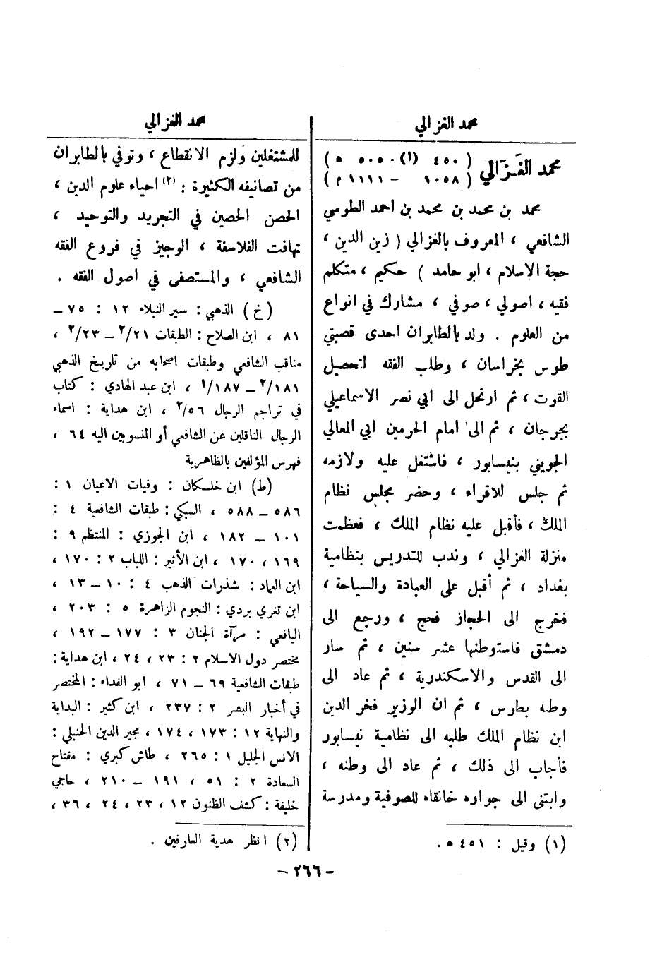 للمشتغلين ولزم الانقطاع، وتوفي بالطابران من تصانيفه الكثيرة: (2) احياء علوم الدين الحصن الحصين في التجريد والتوحيد تهافت الفلاسفة، الوجيز في فروع الفقه الشافعي، والمستصفى في اصول الفقه.