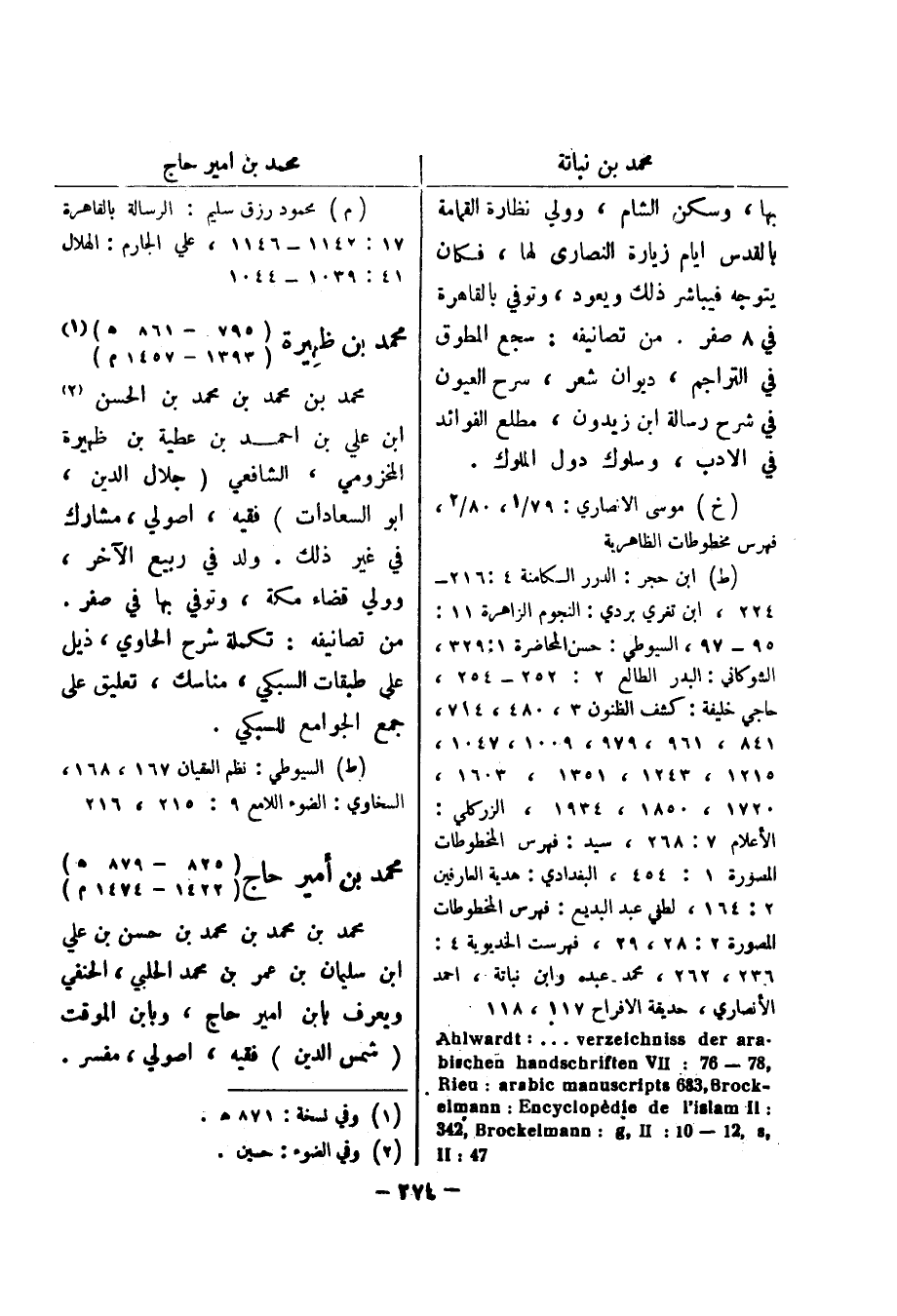 841، 961، 979، 1009، 1047، 1215، 1243، 1351، 1603، 1720، 1850، 1934، الزركلي: الاعلام 7: 268، سيد: فهرس المخطوطات المصورة 1: 454، البغدادي: هدية العارفين 2: 164، لطفي عبد البديع: فهرس المخطوطات المصورة 2: 28، 29، فهرست الخديوية 4: 236، 262، محمد عبده وابن نباتة، احمد الانصاري، حديقة الافراح 117، 118، 78 - 76: bischen handschriften VII - Ahlwardt: ... verzeichniss der ara: elmann: Encyclopedie de l ' islam II - Rieu: arabic manuscripts 386 , Brock 47: II , 243 , Brockelmann: g , II: 01 - 21 , s (م) محمود رزق سليم: الرسالة بالقاهرة 17: 1142 - 1146، علي الجارم: الهلال 41: 1039 - 1044 محمد بن ظهيرة (795 - 861 هـ) (1) (1393 - 1457 م) محمد بن محمد بن محمد بن الحسن (2) ابن علي بن احمد بن عطية بن ظهيرة
