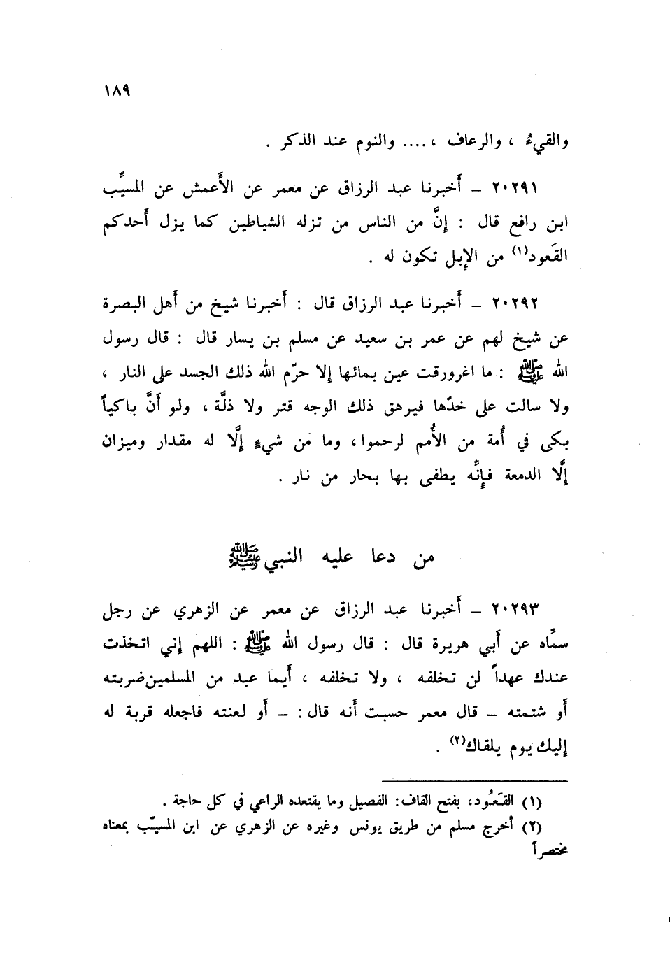 ٢٠٢٩٣ - أَخْبَرَنَا عَبْدُ الرَّزَّاقِ، عَنْ مَعْمَرٍ، عَنِ الزُّهْرِيِّ، عَنْ رَجُلٍ سَمَّاهُ، عَنْ أَبِي هُرَيْرَةَ، قَالَ: قَالَ رَسُولُ اللَّهِ صَلَّى اللهُ عَلَيْهِ وَسَلَّمَ: «اللَّهُمَّ إِنِّي اتَّخَذْتُ عِنْدَكَ عَهْدًا لَنْ تُخْلِفَهُ وَلَا تُخْلِفُهُ، أَيُّمَا عَبْدٍ مِنَ الْمُسْلِمِينَ ضَرَبْتُهُ أَوْ شَتَمْتُهُ - قَالَ مَعْمَرٌ: حَسِبْتُ أَنَّهُ قَالَ: - أَوْ لَعَنْتُهُ، فَاجْعَلْهُ قُرْبَةً لَهُ إِلَيْكَ يَوْمَ يَلْقَاكَ»