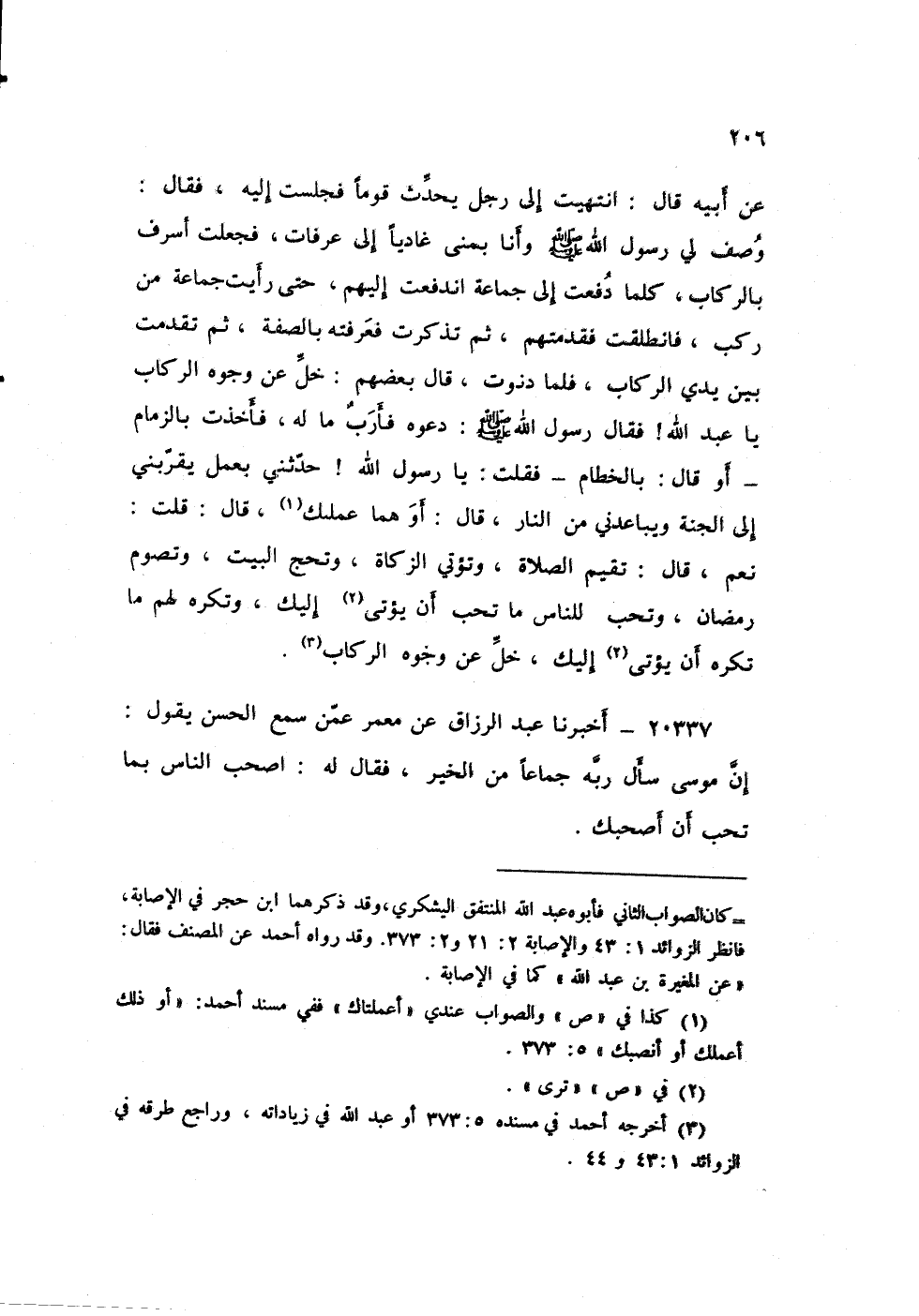 ٢٠٣٣٧ - أَخْبَرَنَا عَبْدُ الرَّزَّاقِ عَنْ مَعْمَرٍ، عَمَّنْ، سَمِعَ الْحَسَنَ، يَقُولُ: «إِنَّ مُوسَى سَأَلَ رَبَّهُ جِمَاعًا مِنَ الْخَيْرِ، فَقَالَ لَهُ: اصْحَبِ النَّاسَ بِمَا تُحِبُّ أَنْ أَصْحَبَكَ»