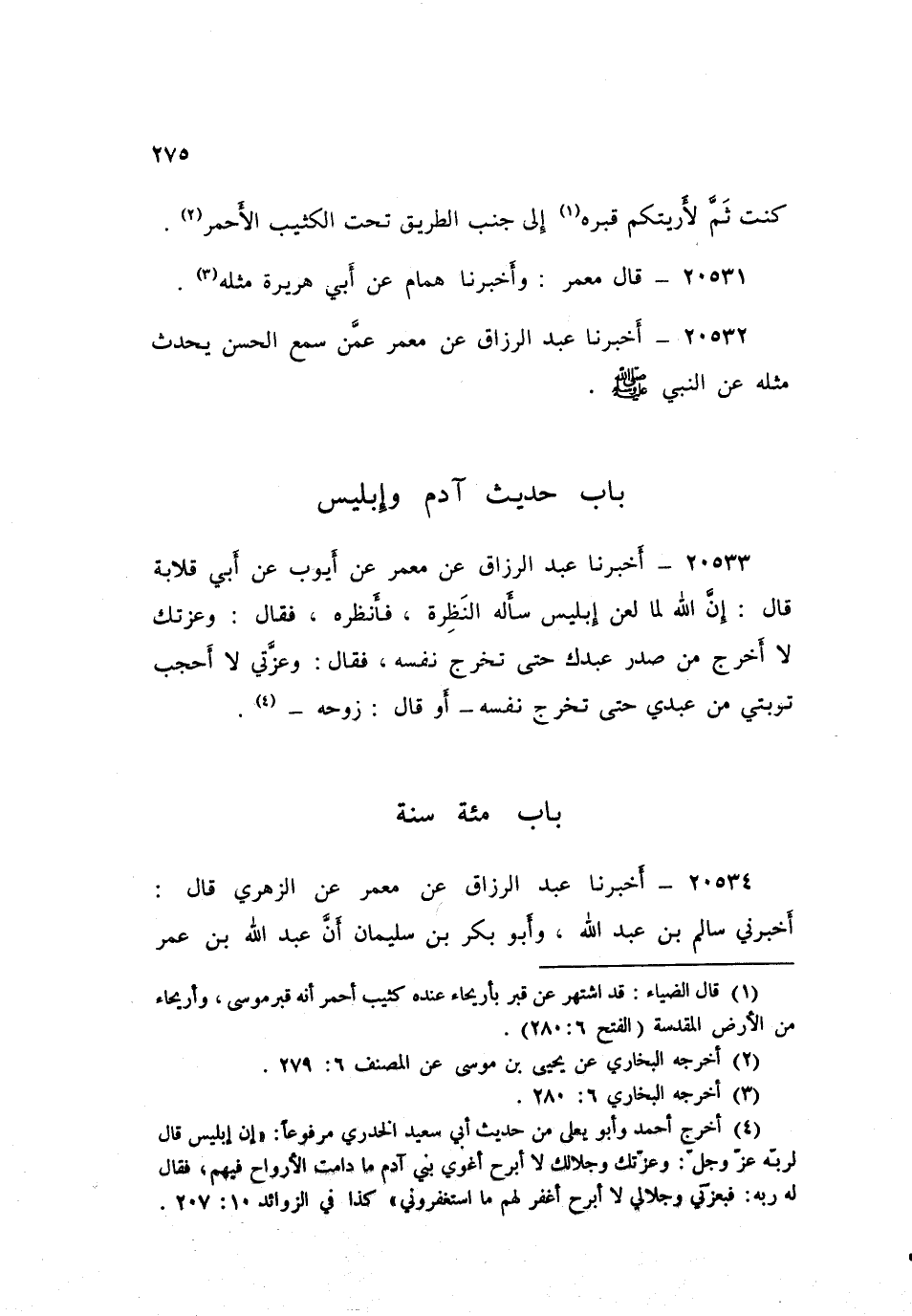 ٢٠٥٣٣ - أَخْبَرَنَا عَبْدُ الرَّزَّاقِ، عَنْ مَعْمَرٍ، عَنْ أَيُّوبَ، عَنْ أَبِي قِلَابَةَ، قَالَ: «إِنَّ اللَّهَ لَمَّا لَعَنَ إِبْلِيسَ سَأَلَهُ النَّظِرَةَ فَأَنْظَرَهُ، فَقَالَ: وَعِزَّتِكَ لَا أَخْرُجُ مِنْ صَدْرِ عَبْدِكَ حَتَّى تَخْرُجَ نَفْسُهُ، فَقَالَ: وَعِزِّتِي لَا أَحْجُبُ تَوْبَتِي مِنْ عَبْدِي حَتَّى تَخْرُجَ نَفْسُهُ - أَوْ قَالَ: رُوحُهُ»