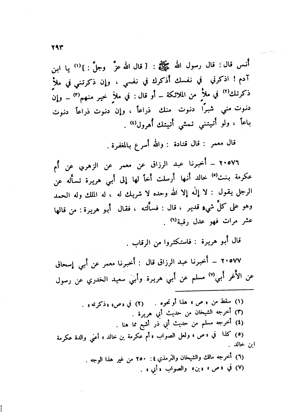 ٢٠٥٧٧ - أَخْبَرَنَا عَبْدُ الرَّزَّاقِ، قَالَ أَخْبَرَنَا مَعْمَرٌ، عَنْ أَبِي إِسْحَاقَ، عَنِ الْأَغَرِّ أَبِي مُسْلِمٍ، عَنْ أَبِي هُرَيْرَةَ، وَأَبِي سَعِيدٍ الْخُدْرِيِّ، عَنْ رَسُولِ اللَّهِ صَلَّى اللهُ عَلَيْهِ وَسَلَّمَ قَالَ: «مَا اجْتَمَعَ قَوْمٌ يَذْكُرُونَ اللَّهَ إِلَّا حَفَّتْهُمُ الْمَلَائِكَةُ وَتَغَشَّتْهُمُ الرَّحْمَةُ، وَنَزَلَتْ عَلَيْهِمُ السَّكِينَةُ، وَذَكَرَهُمُ اللَّهُ فِيمَنْ عِنْدَهُ»