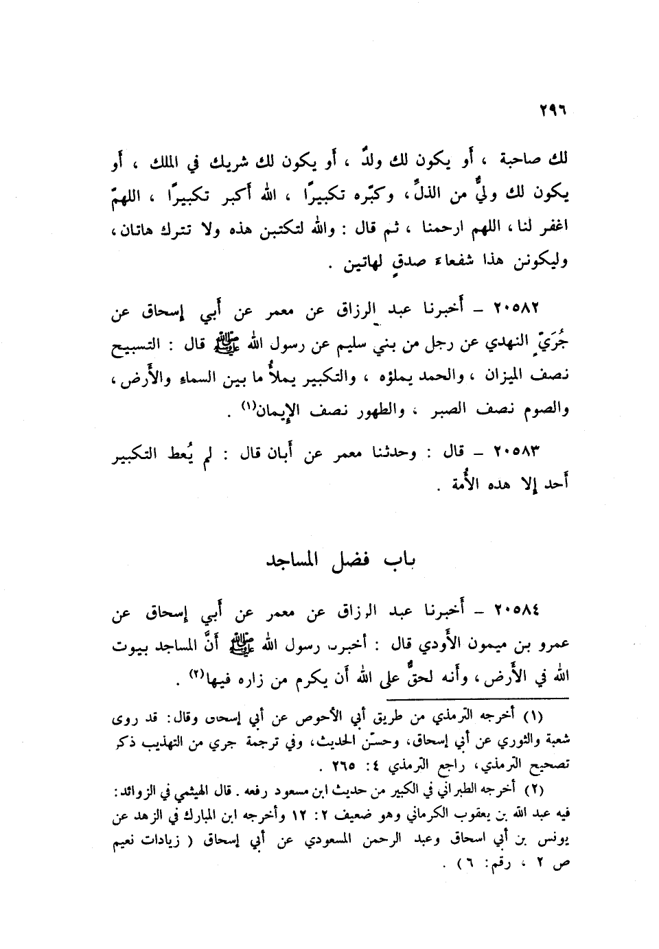 ٢٠٥٨٢ - أَخْبَرَنَا عَبْدُ الرَّزَّاقِ، عَنْ مَعْمَرٍ، عَنْ أَبِي إِسْحَاقَ، عَنْ جُرَيٍّ النَّهْدِيِّ، عَنْ رَجُلٍ، مِنْ بَنِي سُلَيْمٍ، عَنْ رَسُولِ اللَّهِ صَلَّى اللهُ عَلَيْهِ وَسَلَّمَ قَالَ: «التَّسْبِيحُ نِصْفُ الْمِيزَانِ، وَالْحَمْدُ يَمْلُؤهُ، وَالتَّكْبِيرُ يَمْلَأُ مَا بَيْنَ السَّمَاءِ وَالْأَرْضِ، وَالصَّوْمُ نِصْفُ الصَّبْرِ، وَالطُّهُورُ نِصْفُ الْإِيمَانِ»