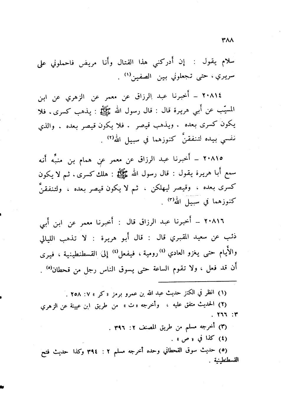 ٢٠٨١٦ - أَخْبَرَنَا عَبْدُ الرَّزَّاقِ، قَالَ أَخْبَرَنَا مَعْمَرٌ، عَنِ ابْنِ أَبِي ذِئْبٍ، عَنْ سَعِيدٍ الْمَقْبُرِيِّ، قَالَ: قَالَ أَبُو هُرَيْرَةَ: «لَا تَذْهَبُ اللَّيَالِي وَالْأَيَّامُ حَتَّى يَغْزُوَ الْعَادِي رُومِيَّةَ، فَيَفْعَلَ إِلَى الْقُسْطَنْطِينِيَّةِ فَيَرَى أَنْ قَدْ فَعَلَ، وَلَا تَقُومُ السَّاعَةُ حَتَّى يَسُوقَ النَّاسَ رَجُلٌ مِنْ قَحْطَانَ»