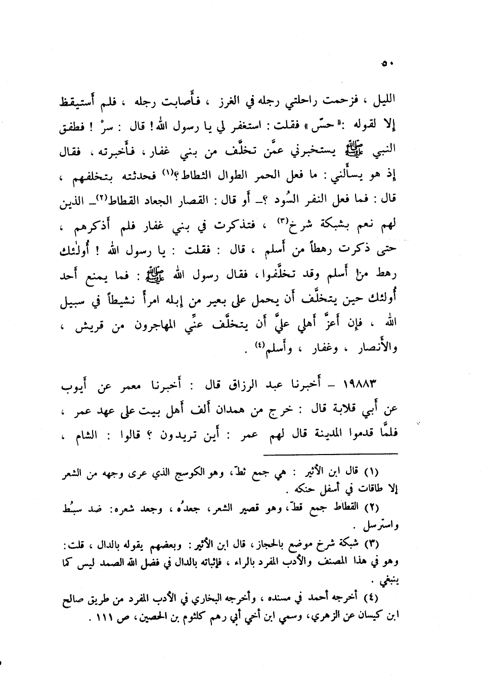 ١٩٨٨٣ - أَخْبَرَنَا عَبْدُ الرَّزَّاقِ، قَالَ: أَخْبَرَنَا مَعْمَرٌ، عَنْ أَيُّوبَ، عَنْ أَبِي قِلَابَةَ، قَالَ: خَرَجَ مِنْ هَمْدَانَ أَلْفُ أَهْلِ بَيْتٍ عَلَى عَهْدِ عُمَرَ، فَلَمَّا قَدِمُوا الْمَدِينَةَ، قَالَ لَهُمْ عُمَرُ: «أَيْنَ تُرِيدُونَ؟» ، قَالُوا: الشَّامَ، قَالَ: «بَلِ الْعِرَاقَ» ، قَالُوا: بَلِ الشَّامَ، فَإِنَّ إِلَيْهَا مُهَاجِرَ أَوَّلِنَا، فَقَالَ عُمَرُ: «بَلِ الْعِرَاقَ فَإِنَّ بِهَا جِهَادًا حَسَنًا، وَبِهَا فَتًى وَرِيفٌ» ، قَالَ: فَجَعَلَ يُرَدِّدُ رِكَابَهُمْ نَحْوَ الْعِرَاقِ، وَهُمْ يَصرِفُونَهَا نَحْوَ الشَّامِ، حَتَّى أَصَابَهُ عُودٌ مِنْ رِحَالِهِمْ، فَدَمِيَ رَأْسُهُ، فَلَمَّا رَأَوْا ذَلِكَ قَالُوا: فَحَيْثُ شِئْتَ يَا أَمِيرَ الْمُؤْمِنِينَ، قَالَ: «فَالْعِرَاقُ» ، فَنَزَلُوا الْكُوفَةَ، قَالَ أَبُو قِلَابَةَ: فَإِنَّهُمْ لَأَكْثَرُ أَهْلِهَا، وَأَعَزُّهُ إِلَى الْيَوْمِ