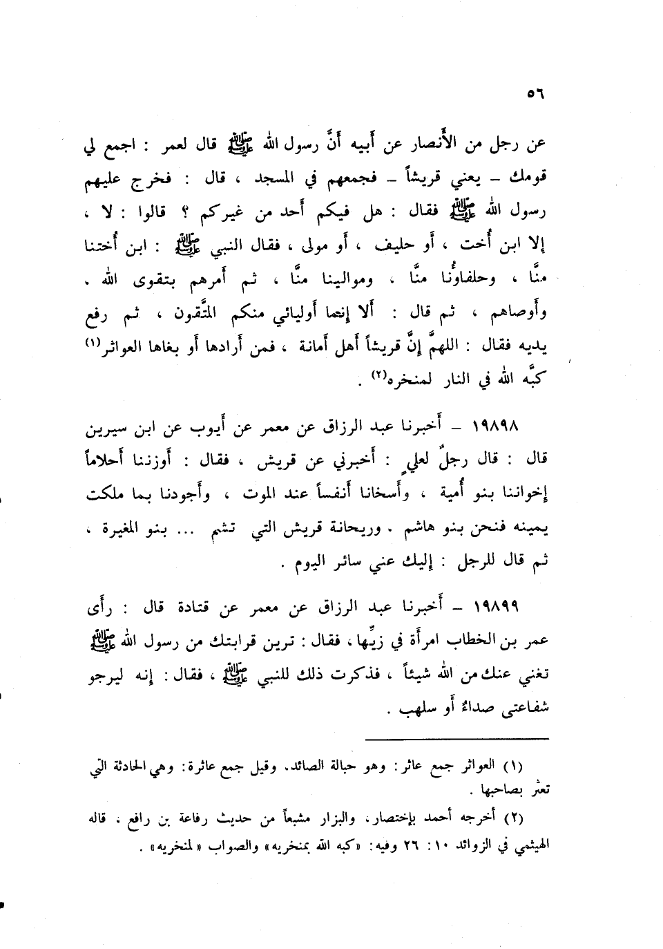 ١٩٨٩٨ - أَخْبَرَنَا عَبْدُ الرَّزَّاقِ، عَنْ مَعْمَرٍ، عَنْ أَيُّوبَ، عَنِ ابْنِ سِيرِينَ، قَالَ: قَالَ رَجُلٌ لِعَلِيٍّ: أَخْبِرْنِي عَنْ قُرَيْشٍ، فَقَالَ: «أَوْزَنُنَا أَحْلَامًا، إِخْوَانُنَا بَنُو أُمَيَّةَ، وَأَسْخَانَا أَنْفُسًا عِنْدَ الْمَوْتِ، وَأَجْوَدُنَا بِمَا مَلَكَتْ يَمِينُهُ، فَنَحْنُ بَنُو هَاشِمٍ، وَرَيْحَانَةُ قُرَيْشٍ الَّتِي تُشَمُّ بَنُو الْمُغِيرَةِ» ثُمَّ قَالَ لِلرَّجُلِ: «إِلَيْكَ عَنِّي سَائِرَ الْيَوْمِ»