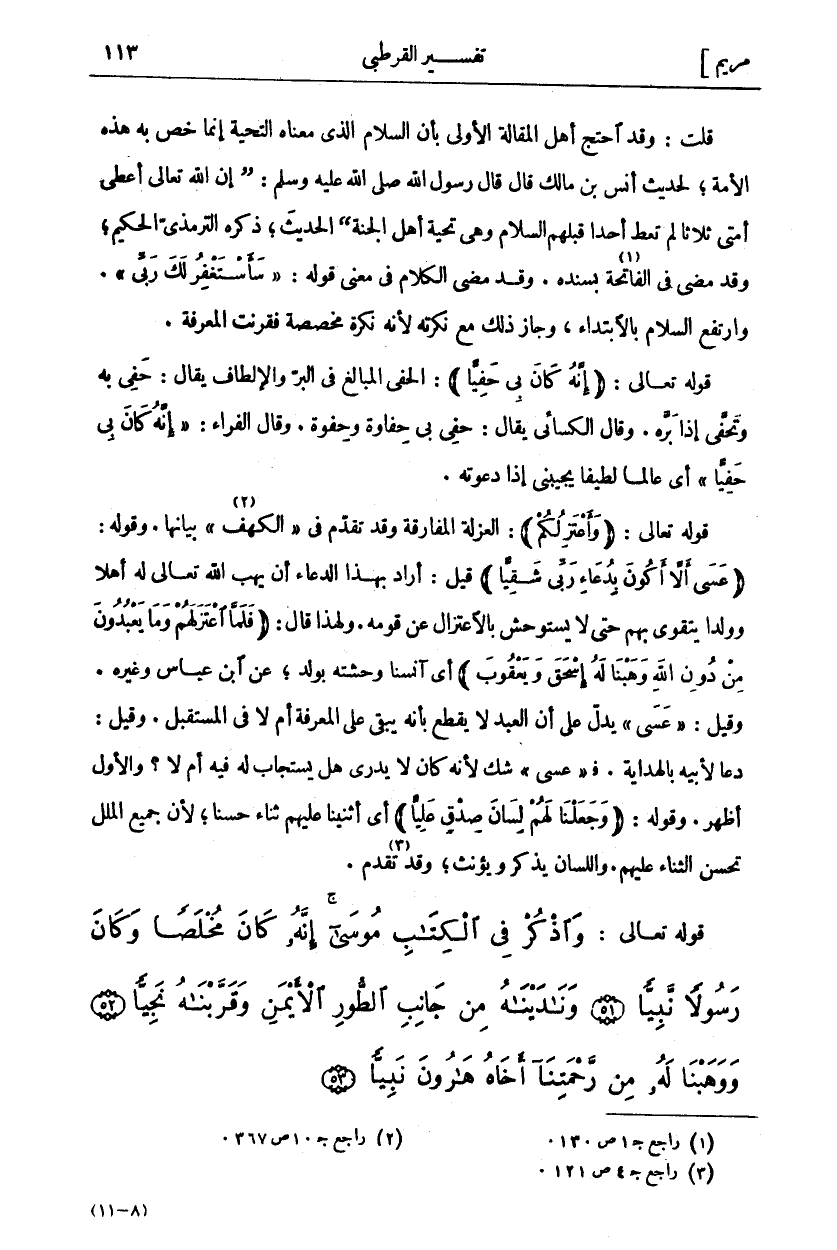قُلْتُ: وَقَدِ احْتَجَّ أَهْلُ الْمَقَالَةِ الْأُولَى بِأَنَّ السَّلَامَ الَّذِي مَعْنَاهُ التَّحِيَّةُ إِنَّمَا خُصَّ بِهِ هَذِهِ الْأُمَّةُ، لِحَدِيثِ أَنَسِ بْنِ مَالِكٍ قَالَ قَالَ رَسُولُ اللَّهِ صَلَّى اللَّهُ عَلَيْهِ وَسَلَّمَ (إِنَّ اللَّهَ تَعَالَى أَعْطَى أُمَّتِي ثَلَاثًا لَمْ تُعْطَ أَحَدًا قَبْلَهُمُ السَّلَامَ وَهِيَ تَحِيَّةُ أَهْلِ الْجَنَّةِ) الْحَدِيثَ، ذَكَرَهُ التِّرْمِذِيُّ الْحَكِيمُ، وَقَدْ مَضَى فِي الْفَاتِحَةِ «١» بِسَنَدِهِ. وَقَدْ مَضَى الْكَلَامُ فِي مَعْنَى قَوْلِهِ:" سَأَسْتَغْفِرُ لَكَ رَبِّي". وَارْتَفَعَ السَّلَامُ بِالِابْتِدَاءِ، وَجَازَ ذَلِكَ مَعَ نَكِرَتِهِ لِأَنَّهُ نَكِرَةٌ مُخَصَّصَةٌ فَقَرَنَتِ الْمَعْرِفَةَ. قَوْلُهُ تَعَالَى: (إِنَّهُ كانَ بِي حَفِيًّا): الْحَفِيُّ الْمُبَالِغُ فِي الْبِرِّ وَالْإِلْطَافِ، يُقَالُ: حَفِيَ بِهِ وَتَحَفَّى إِذَا بَرَّهُ. وَقَالَ الْكِسَائِيُّ يُقَالُ: حَفِيَ بِي حِفَاوَةً وَحِفْوَةً. وَقَالَ الْفَرَّاءُ:" إِنَّهُ كانَ بِي حَفِيًّا" أَيْ عَالِمًا لَطِيفًا يُجِيبُنِي إِذَا دَعَوْتُهُ. قَوْلُهُ تَعَالَى: (وَأَعْتَزِلُكُمْ): الْعُزْلَةُ الْمُفَارَقَةُ وَقَدْ تَقَدَّمَ فِي" الْكَهْفِ" «٢» بَيَانُهَا. وقوله: (عَسى أَلَّا أَكُونَ بِدُعاءِ رَبِّي شَقِيًّا) قِيلَ: أَرَادَ بِهَذَا الدُّعَاءِ أَنْ يَهَبَ اللَّهُ تَعَالَى لَهُ أَهْلًا وَوَلَدًا يَتَقَوَّى بِهِمْ حَتَّى لَا يَسْتَوْحِشَ بِالِاعْتِزَالِ عَنْ قَوْمِهِ. وَلِهَذَا قَالَ: (فَلَمَّا اعْتَزَلَهُمْ وَما يَعْبُدُونَ مِنْ دُونِ اللَّهِ وَهَبْنا لَهُ إِسْحاقَ وَيَعْقُوبَ) أَيْ آنَسْنَا وَحْشَتَهُ بِوَلَدٍ، عن ابن عباس وغيره. وقيل:" عيسى" يَدُلُّ عَلَى أَنَّ الْعَبْدَ لَا يَقْطَعُ بِأَنَّهُ يَبْقَى عَلَى الْمَعْرِفَةِ أَمْ لَا فِي الْمُسْتَقْبَلِ. وَقِيلَ: دَعَا لِأَبِيهِ بِالْهِدَايَةِ. فَ" عَسَى" شَكٌّ لِأَنَّهُ كَانَ لَا يَدْرِي هَلْ يُسْتَجَابُ لَهُ فِيهِ أَمْ لَا؟ وَالْأَوَّلُ أَظْهَرُ. وَقَوْلُهُ: (وَجَعَلْنا لَهُمْ لِسانَ صِدْقٍ عَلِيًّا) ٥٠ أَيْ أَثْنَيْنَا عَلَيْهِمْ ثَنَاءً حَسَنًا، لِأَنَّ جَمِيعَ الْمِلَلِ تُحْسِنُ الثَّنَاءَ عليهم. واللسان يذكر ويؤنث، وقد تقدم «٣».