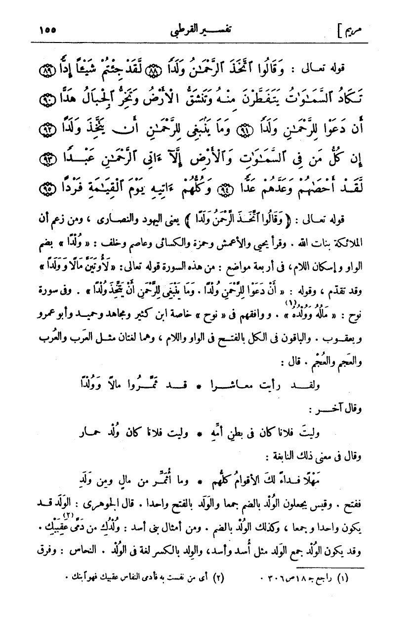 وَقالُوا اتَّخَذَ الرَّحْمنُ وَلَداً (٨٨) لَقَدْ جِئْتُمْ شَيْئاً إِدًّا (٨٩) تَكادُ السَّماواتُ يَتَفَطَّرْنَ مِنْهُ وَتَنْشَقُّ الْأَرْضُ وَتَخِرُّ الْجِبالُ هَدًّا (٩٠) أَنْ دَعَوْا لِلرَّحْمنِ وَلَداً (٩١) وَما يَنْبَغِي لِلرَّحْمنِ أَنْ يَتَّخِذَ وَلَداً (٩٢)