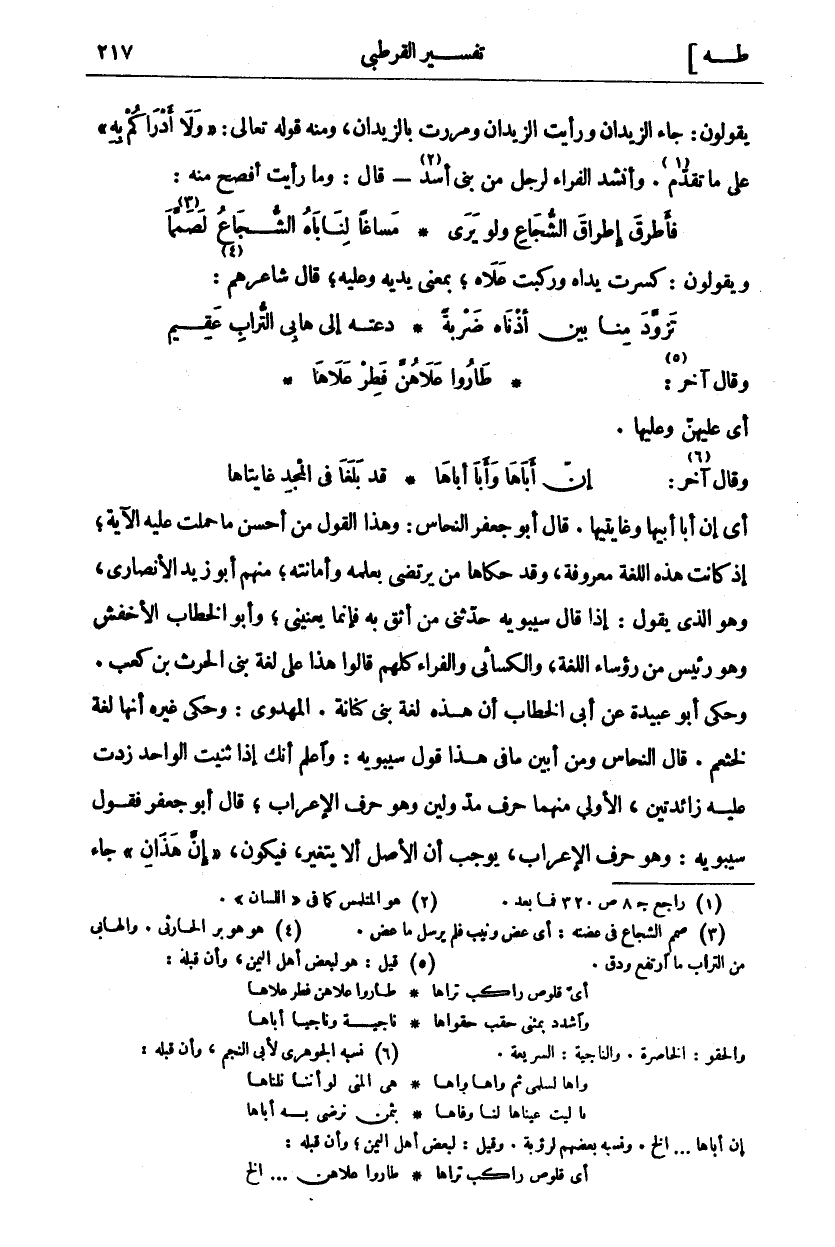 أَيْ إن أبا أبيها وغايتها. قَالَ أَبُو جَعْفَرٍ النَّحَّاسُ: وَهَذَا الْقَوْلُ مِنْ أَحْسَنِ مَا حُمِلَتْ عَلَيْهِ الْآيَةُ، إِذْ كَانَتْ هَذِهِ اللُّغَةُ مَعْرُوفَةً، وَقَدْ حَكَاهَا مَنْ يُرْتَضَى بِعِلْمِهِ وَأَمَانَتِهِ، مِنْهُمْ أَبُو زَيْدٍ الْأَنْصَارِيُّ، وَهُوَ الَّذِي يَقُولُ: إِذَا قَالَ سِيبَوَيْهِ حَدَّثَنِي مَنْ أَثِقُ بِهِ فَإِنَّمَا يَعْنِينِي، وَأَبُو الْخَطَّابِ الْأَخْفَشُ وَهُوَ رَئِيسٌ مِنْ رُؤَسَاءِ اللُّغَةِ، وَالْكِسَائِيُّ وَالْفَرَّاءُ كلهم قالوا هذا على لغة بني الحرث بْنِ كَعْبٍ. وَحَكَى أَبُو عُبَيْدَةَ عَنْ أَبِي الْخَطَّابِ أَنَّ هَذِهِ لُغَةُ بَنِي كِنَانَةَ. الْمَهْدَوِيُّ: وَحَكَى غَيْرُهُ أَنَّهَا لُغَةٌ لِخَثْعَمَ. قَالَ النَّحَّاسُ وَمِنْ أَبْيَنِ مَا فِي هَذَا قَوْلُ سِيبَوَيْهِ: وَاعْلَمْ أَنَّكَ إِذَا ثَنَّيْتَ الْوَاحِدَ زِدْتَ عَلَيْهِ زَائِدَتَيْنِ، الْأُولَى مِنْهُمَا حَرْفُ مَدٍّ وَلِينٍ وَهُوَ حَرْفُ الْإِعْرَابِ، قَالَ أَبُو جَعْفَرٍ فَقَوْلُ سِيبَوَيْهِ: وَهُوَ حَرْفُ الْإِعْرَابِ، يُوجِبُ أَنَّ الْأَصْلَ أَلَّا يتغير، فيكون" إن هذان" جاء