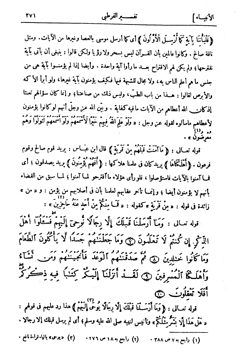 وَما أَرْسَلْنا قَبْلَكَ إِلاَّ رِجالاً نُوحِي إِلَيْهِمْ فَسْئَلُوا أَهْلَ الذِّكْرِ إِنْ كُنْتُمْ لَا تَعْلَمُونَ (٧) وَما جَعَلْناهُمْ جَسَداً لَا يَأْكُلُونَ الطَّعامَ وَما كانُوا خالِدِينَ (٨) ثُمَّ صَدَقْناهُمُ الْوَعْدَ فَأَنْجَيْناهُمْ وَمَنْ نَشاءُ وَأَهْلَكْنَا الْمُسْرِفِينَ (٩) لَقَدْ أَنْزَلْنا إِلَيْكُمْ كِتاباً فِيهِ ذِكْرُكُمْ أَفَلا تَعْقِلُونَ (١٠)