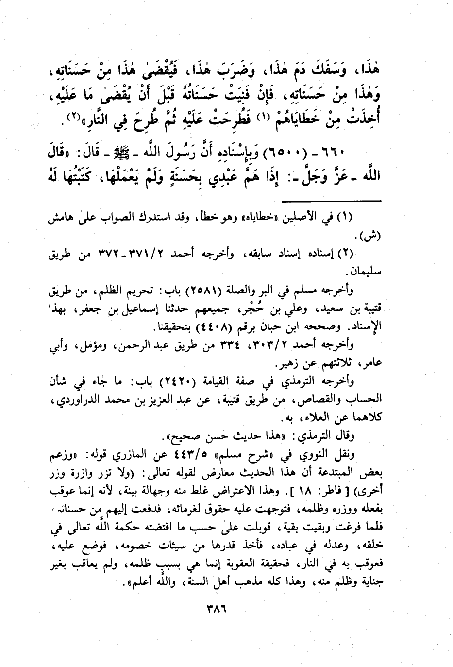 6500 - وَبِإِسْنَادِهِ أَنَّ رَسُولَ اللَّهِ صَلَّى اللهُ عَلَيْهِ وَسَلَّمَ قَالَ: " قَالَ اللَّهُ عَزَّ وَجَلَّ: §إِذَا هَمَّ عَبْدِي بِحَسَنَةٍ وَلَمْ يَعْمَلْهَا كَتَبْتُهَا لَهُ حَسَنَةً، فَإِنْ عَمِلَهَا كَتَبْتُهَا لَهُ عَشْرَ حَسَنَاتٍ إِلَى سَبْعِ مِائَةِ ضِعْفٍ، وَإِذَا هَمَّ عَبْدِي بِسَيِّئَةٍ فَلَمْ يَعْمَلْهَا لَمْ أَكْتُبْهَا عَلَيْهِ، فَإِنْ عَمِلَهَا كَتَبْتُهَا عَلَيْهِ سَيِّئَةً وَاحِدَةً "Kإسناده صحيح