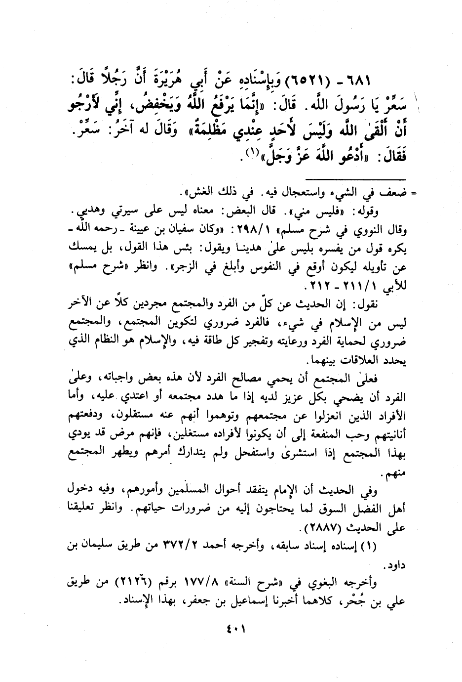 6521 - وَبِإِسْنَادِهِ، عَنْ أَبِي هُرَيْرَةَ، أَنَّ رَجُلًا قَالَ: سَعِّرْ يَا رَسُولَ اللَّهِ قَالَ: «§إِنَّمَا يَرْفَعُ اللَّهُ وَيَخْفِضُ، إِنِّي لَأَرْجُو أَنْ أَلْقَى اللَّهَ وَلَيْسَ لِأَحَدٍ عِنْدِي مَظْلِمَةٌ»، وَقَالَ لَهُ آخَرُ: سَعِّرْ، فَقَالَ: «أَدْعُو اللَّهَ عَزَّ وَجَلَّ» Kإسناده صحيح