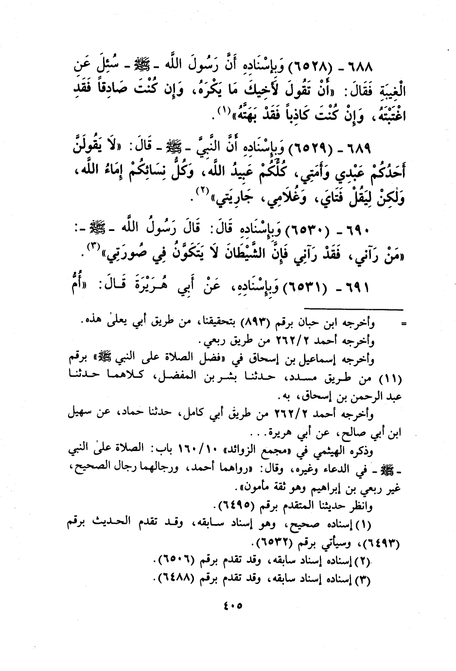 6528 - وَبِإِسْنَادِهِ أَنَّ رَسُولَ اللَّهِ صَلَّى اللهُ عَلَيْهِ وَسَلَّمَ سُئِلَ عَنِ الْغِيبَةِ، فَقَالَ: «§أَنْ تَقُولَ لِأَخِيكَ مَا يَكْرَهُ، وَإِنْ كُنْتَ صَادِقًا فَقَدِ اغْتَبْتَهُ، وَإِنْ كُنْتَ كَاذِبًا فَقَدْ بَهَتَّهُ» Kإسناده صحيح
