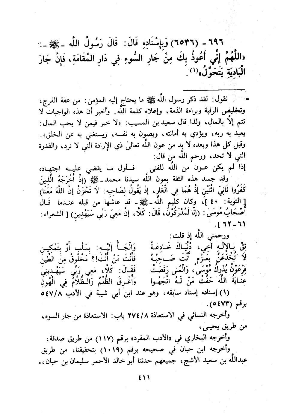 6536 - وَبِإِسْنَادِهِ قَالَ: قَالَ رَسُولُ اللَّهِ صَلَّى اللهُ عَلَيْهِ وَسَلَّمَ: «§اللَّهُمَّ إِنِّي أَعُوذُ بِكَ مِنْ جَارِ السُّوءِ فِي دَارِ الْمُقَامَةِ، فَإِنَّ جَارَ الْبَادِيَةِ يَتَحَوَّلُ» Kإسناده حسن