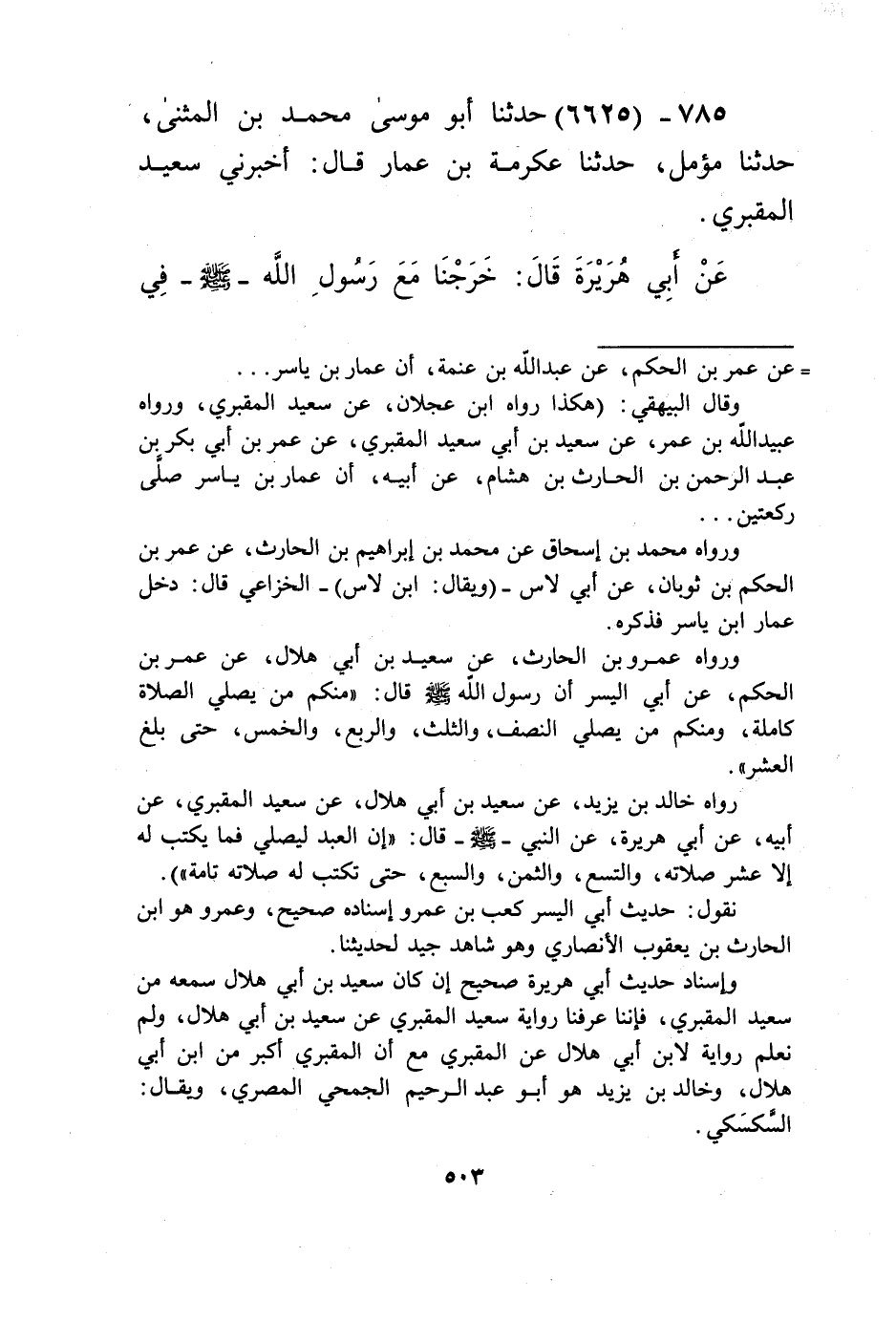 6625 - حَدَّثَنَا أَبُو مُوسَى مُحَمَّدُ بْنُ الْمُثَنَّى، حَدَّثَنَا مُؤَمَّلٌ، حَدَّثَنَا عِكْرِمَةُ بْنُ عَمَّارٍ قَالَ: أَخْبَرَنِي سَعِيدٌ الْمَقْبُرِيُّ، عَنْ أَبِي هُرَيْرَةَ قَالَ: خَرَجْنَا مَعَ رَسُولِ اللَّهِ صَلَّى اللهُ عَلَيْهِ وَسَلَّمَ فِي غَزْوَةِ تَبُوكَ فَنَزَلْنَا ثَنِيَّةَ الْوَدَاعِ، فَرَأَى رَسُولُ اللَّهِ صَلَّى اللهُ عَلَيْهِ وَسَلَّمَ مَصَابِيحَ، وَرَأَى نِسَاءً يَبْكِينَ فَقَالَ: «مَا هَذَا؟»، فَقِيلَ: نِسَاءٌ تُمُتِّعَ مِنْهُنَّ يَبْكِينَ، فَقَالَ رَسُولُ اللَّهِ صَلَّى اللهُ عَلَيْهِ وَسَلَّمَ: " §حَرَّمَ - أَوْ قَالَ: هَدَمَ - الْمُتْعَةَ النِّكَاحُ، وَالطَّلَاقُ، وَالْعِدَّةُ، وَالْمِيرَاثُ "Kإسناده ضعيف