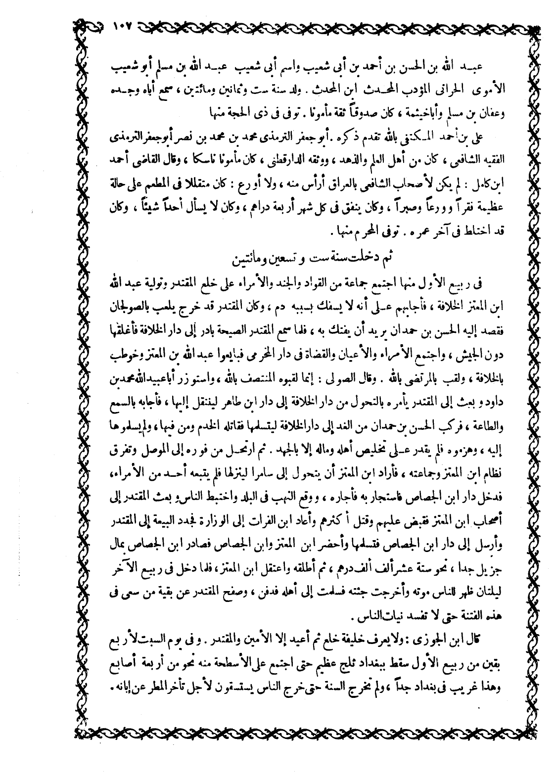 ثُمَّ دَخَلَتْ سَنَةُ سِتٍّ وَتِسْعِينَ وَمِائَتَيْنِ