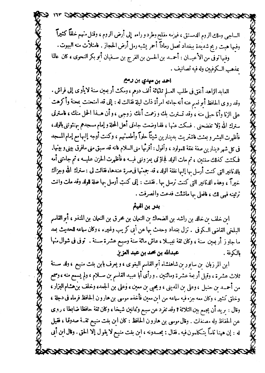 الْعَابِدُ الزَّاهِدُ أَنْفَقَ فِي طَلَبِ الْعِلْمِ ثَلَاثَمِائَةِ أَلْفِ دِرْهَمٍ، وَمَكَثَ أَرْبَعِينَ سَنَةً لَا يَأْوِي إِلَى فِرَاشٍ.