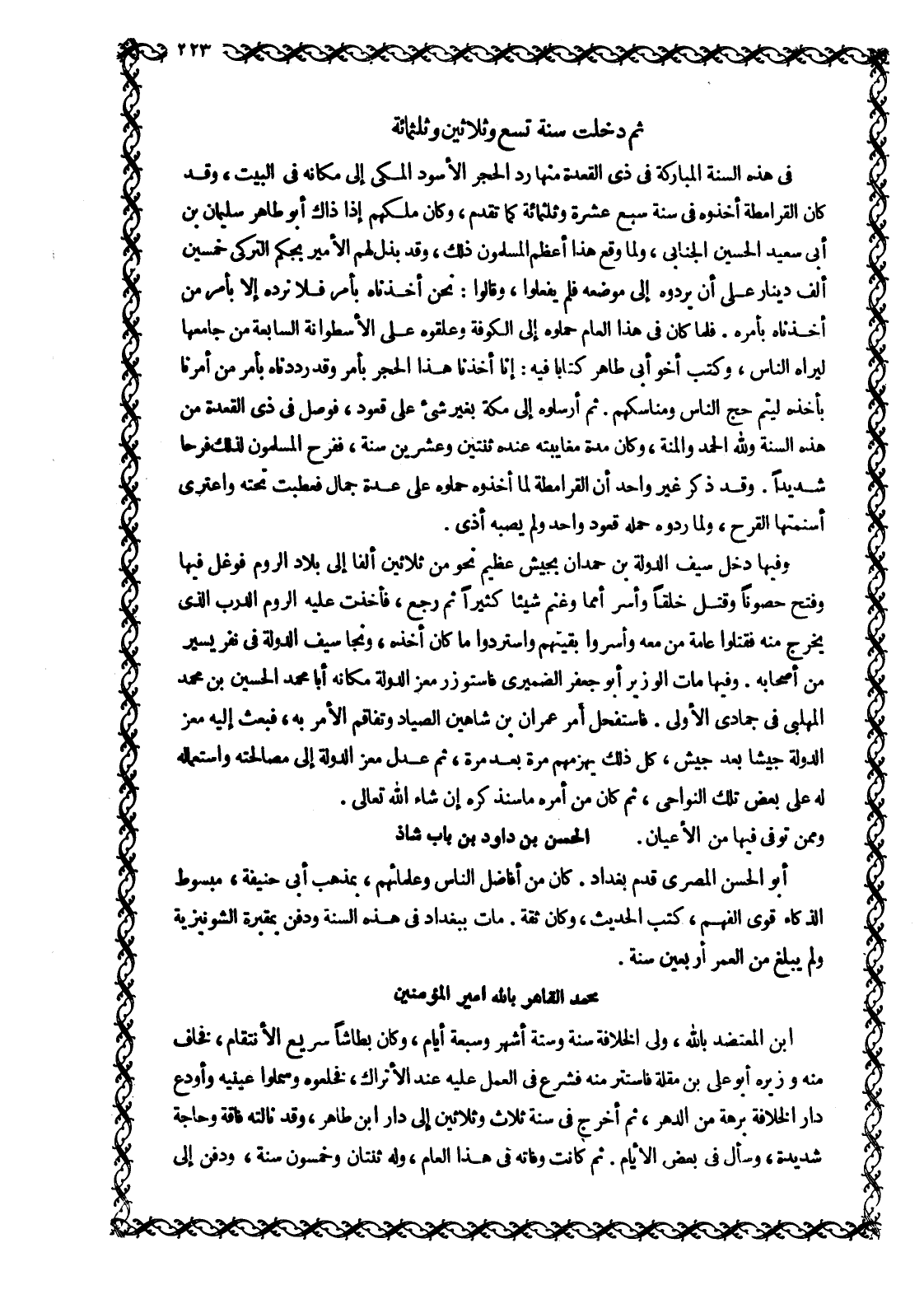 ثم دخلت سنة تسع وثلاثين وثلاثمائة