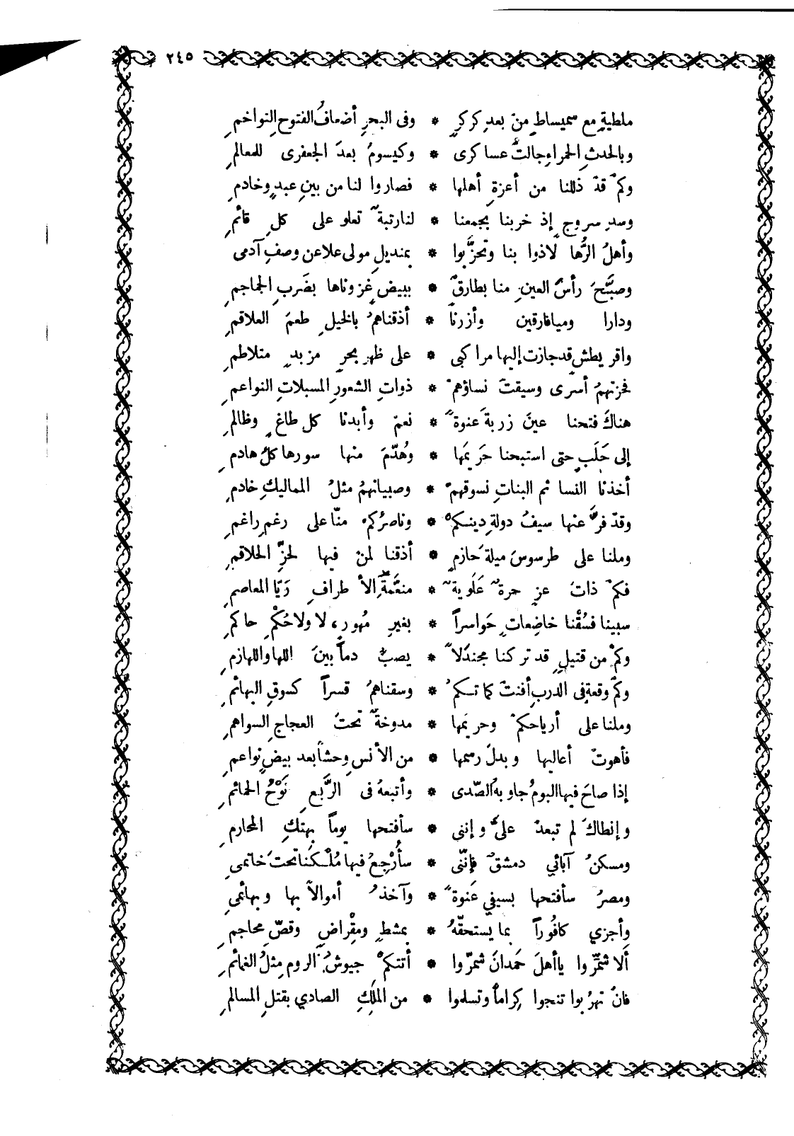 هُنَاكَ فَتَحْنَا عَيْنَ زَرْبَةَ عَنْوَةً ... نَعَمْ وَأَبَدْنَا كُلَّ طَاغٍ وَظَالِمِ