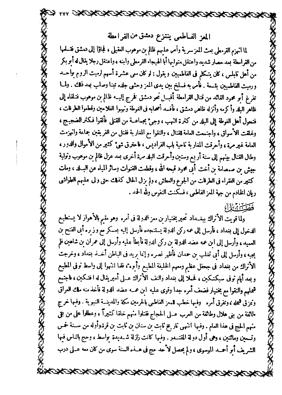 ذكر مُلْكُ الْمُعِزِّ الْفَاطِمِيِّ دِمَشْقَ وَانْتِزَاعُهُ إِيَّاهَا مِنْ القرامطة