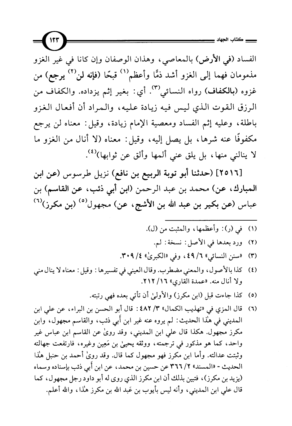 [2516] (حدثنا أبو توبة الربيع بن نافع) نزيل طرسوس (عن ابن المبارك، عن) محمد بن عبد الرحمن (ابن أبي ذئب، عن القاسم) بن عباس (عن بكير بن عبد الله بن الأشج، عن) مجهول (¬5) (بن مكرز) (¬6)