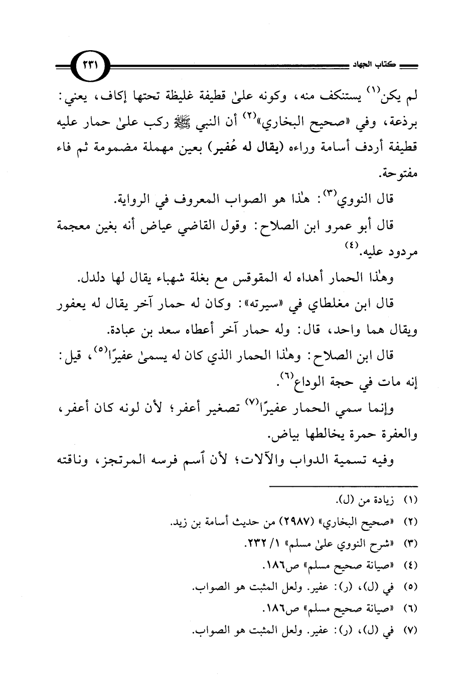 قال ابن الصلاح: وهذا الحمار الذي كان له يسمى عفيرًا (¬5)، قيل: إنه مات في حجة الوداع (¬6).