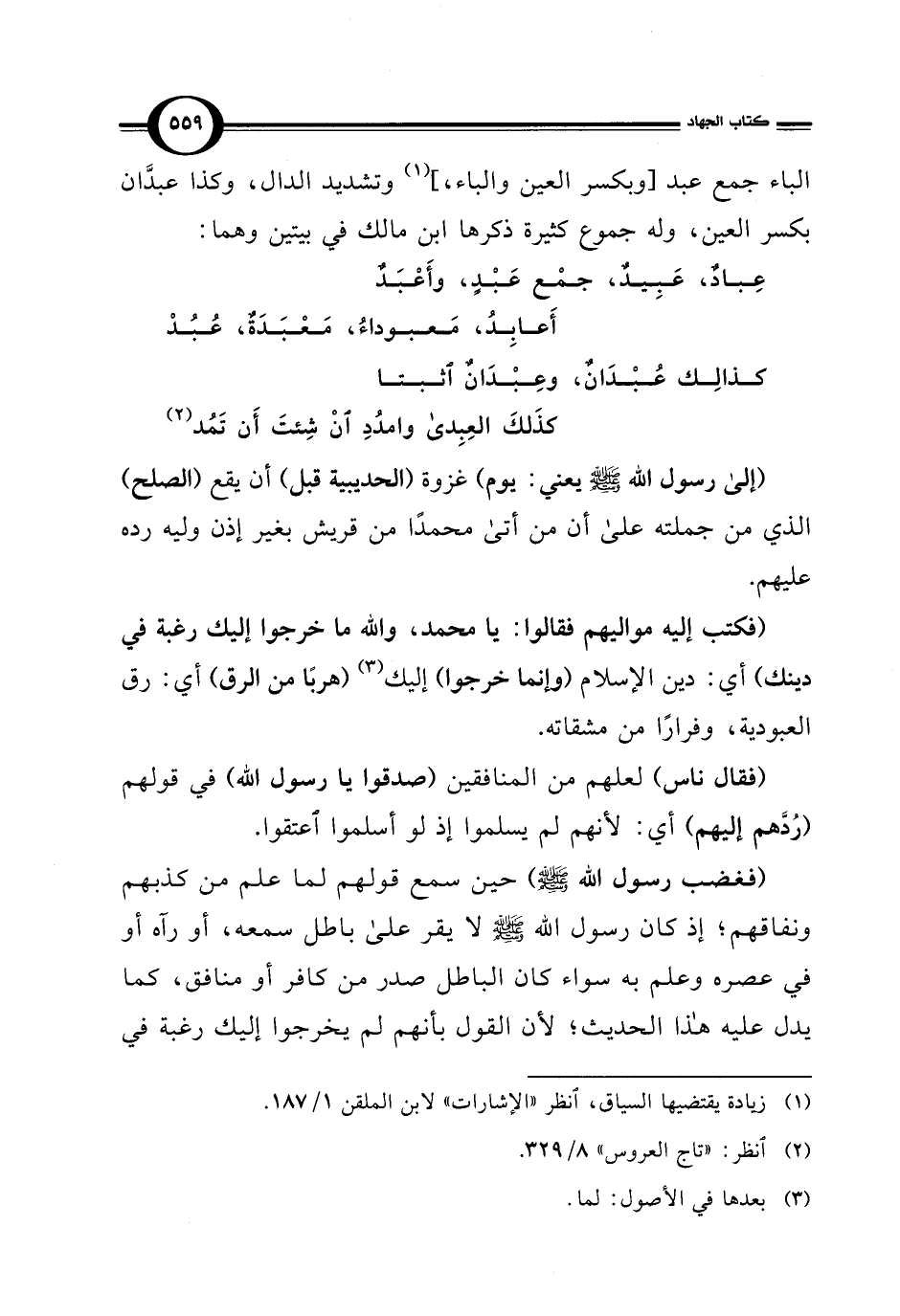 الباء جمع عبد [وبكسر العين والباء، ] (¬1) وتشديد الدال، وكذا عبدَّان بكسر العين، وله جموع كثيرة ذكرها ابن مالك في بيتين وهما: