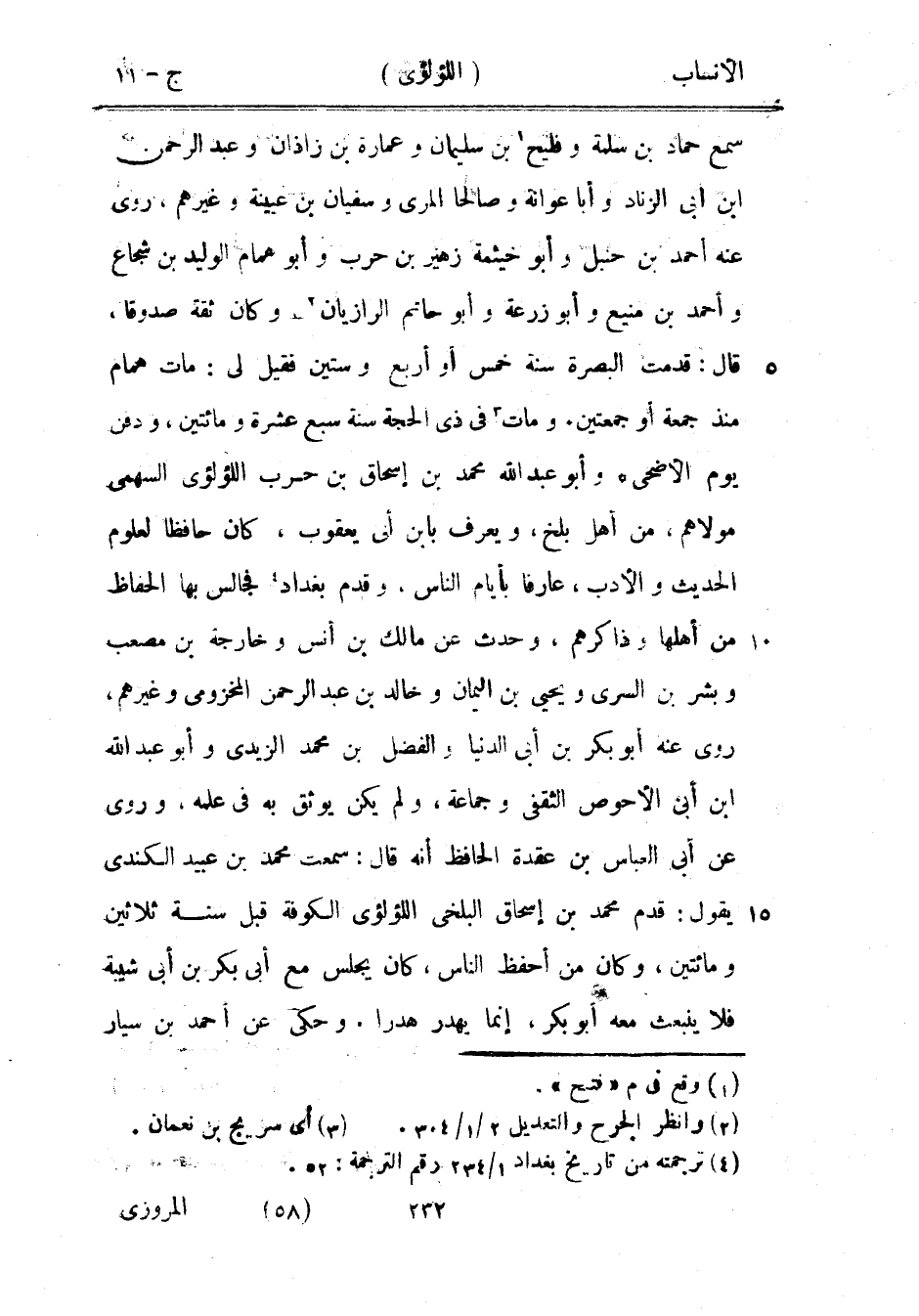 [4] ترجمته من تاريخ بغداد 1/ 234 رقم الترجمة: 52.