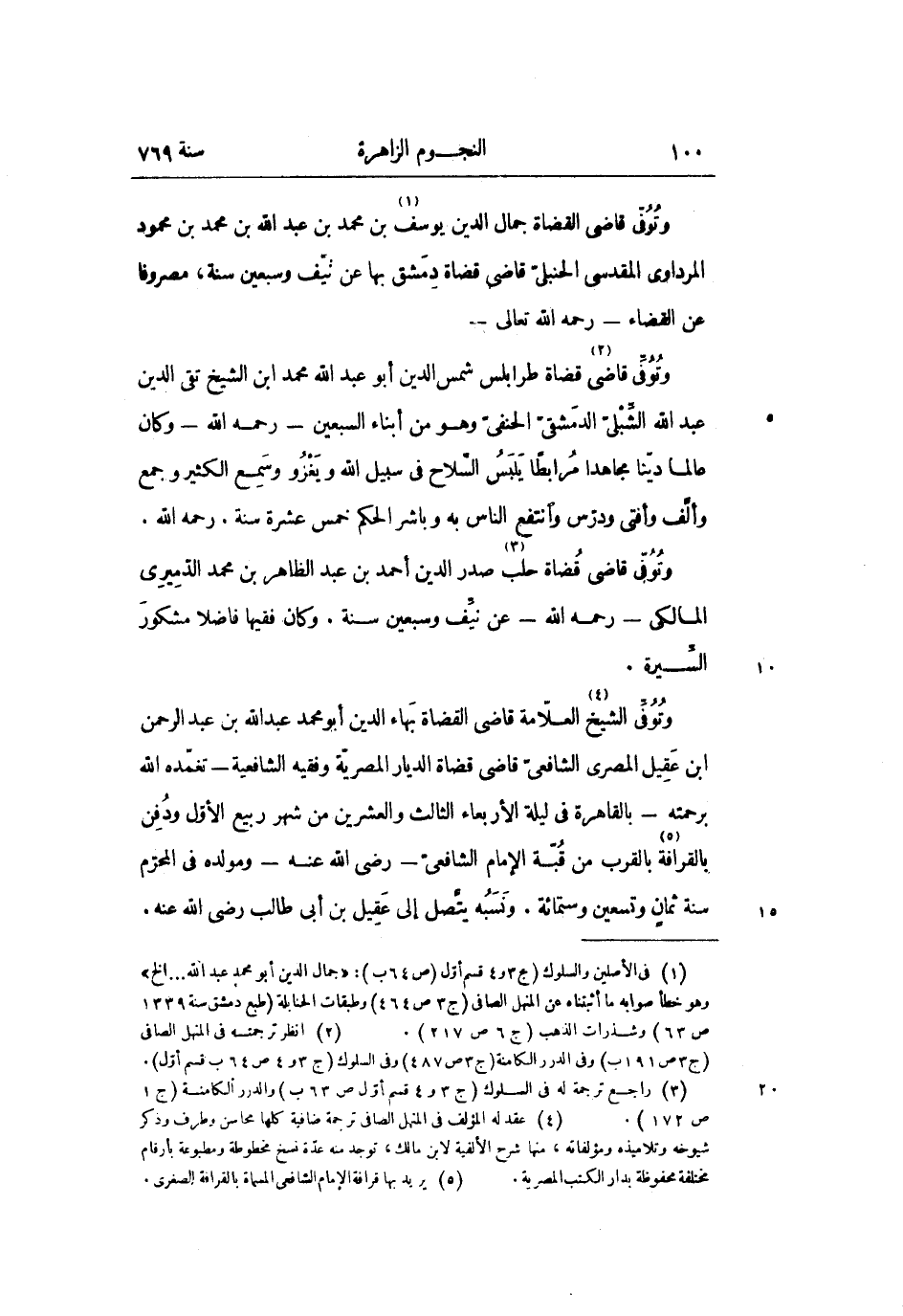 وتوفّى الشيخ «4» العلّامة قاضى القضاة بهاء الدين أبو محمد عبد الله بن عبد الرحمن ابن عقيل المصرى الشافعىّ قاضى قضاة الديار المصريّة وفقيه الشافعية- تغمّده الله برحمته- بالقاهرة في ليلة الأربعاء الثالث والعشرين من شهر ربيع الأوّل ودفن بالقرافة «5» بالقرب من قبّة الإمام الشافعىّ- رضى الله عنه- ومولده في المحرّم سنة ثمان وتسعين وستمائة. ونسبه يتّصل إلى عقيل بن أبى طالب رضى الله عنه.