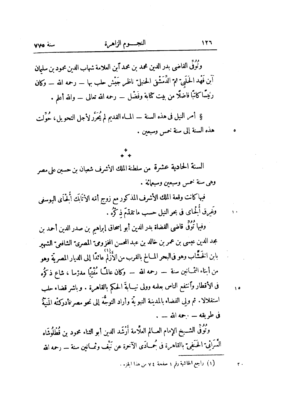 السنة الحادية عشرة من سلطنة الملك الأشرف شعبان بن حسين على مصر وهي سنة خمس وسبعين وسبعمائة.