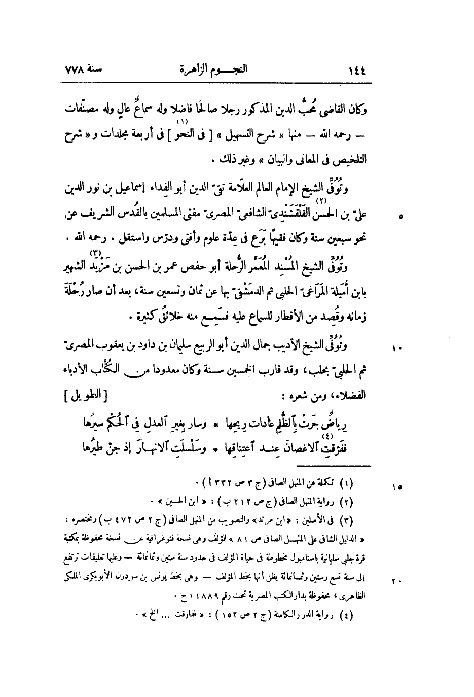 وتوفّى الشيخ الأديب جمال الدين أبو الربيع سليمان بن داود بن يعقوب المصرىّ ثم الحلبىّ بحلب، وقد قارب الخمسين سنة وكان معدودا من الكتّاب الأدباء الفضلاء، ومن شعره: [الطويل]