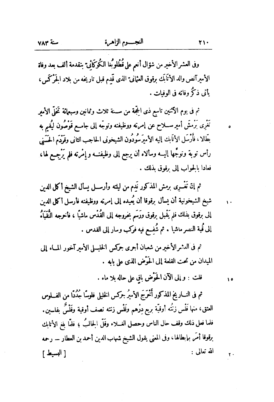 فلما فعل ذلك وقف حال الناس وحصل الغلاء وقلّ الجالب؛ فلمّا بلغ الأتابك برقوقا أمر بإبطالها، وفي المعنى يقول الشيخ شهاب الدين أحمد بن العطار- رحمه الله تعالى: [البسيط]