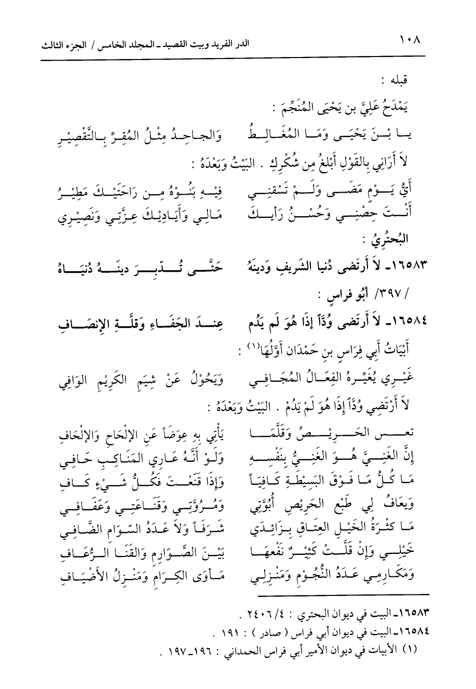 (¬1) الأبيات في ديوان الأمير أبي فراس الحمداني: 196 - 197.