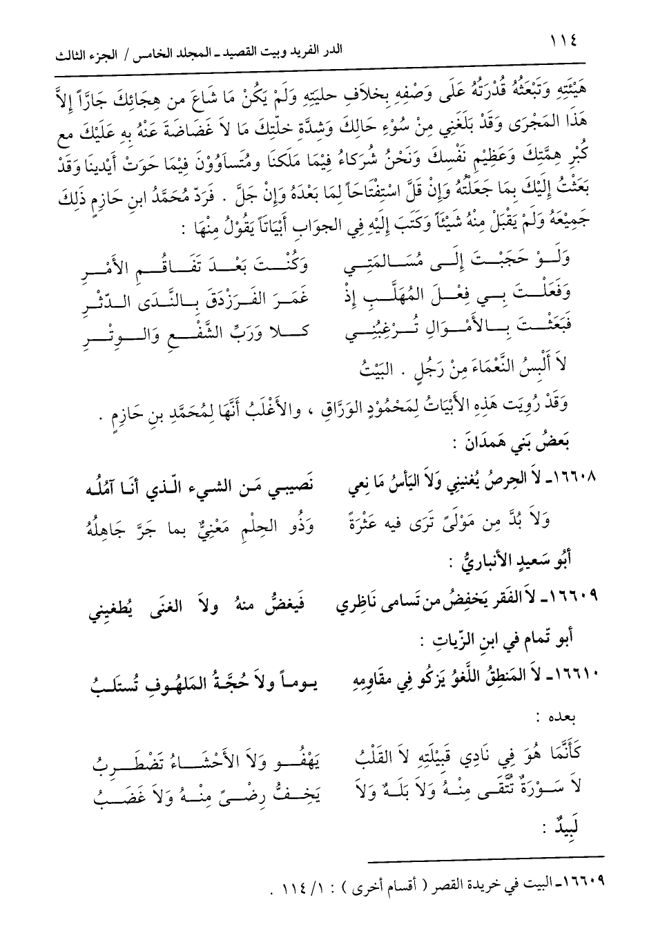 16609 - البيت في خريدة القصر (أقسام أخرى): 1/ 114.