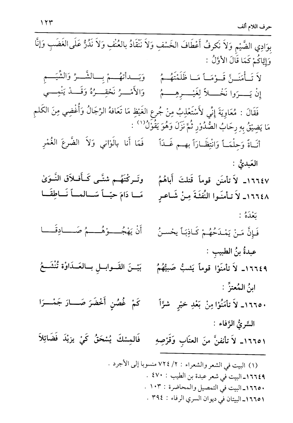 لَا تَأْمَنَنَّ قَوْمًا مَا ظَلَمْتَهُمُ ... وَبَدأتهُمْ بِالشَّرِّ وَالشِّيَمِ