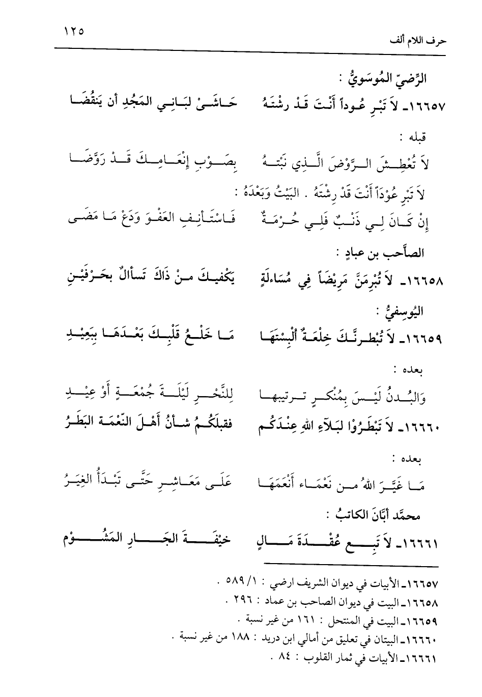 16657 - الأبيات في ديوان الشريف الرضي: 1/ 589.
