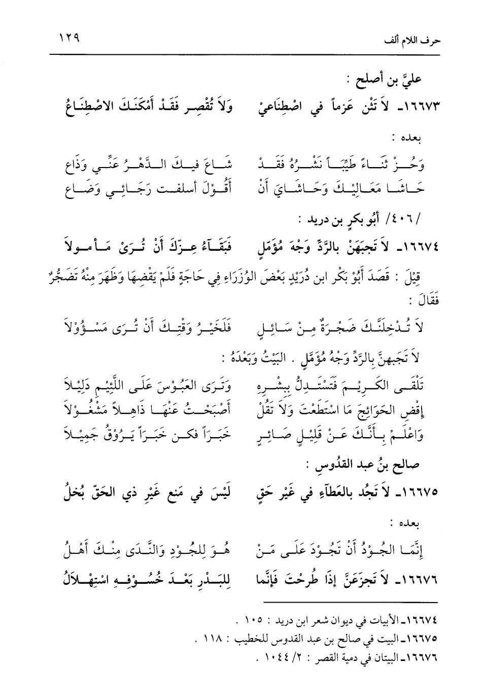 16675 - لَا تَجُد بالعَطآءِ في غَيْر حَقٍ ... لَيْسَ في مَنع غَيْرِ ذي الحَقّ بُخلُ
