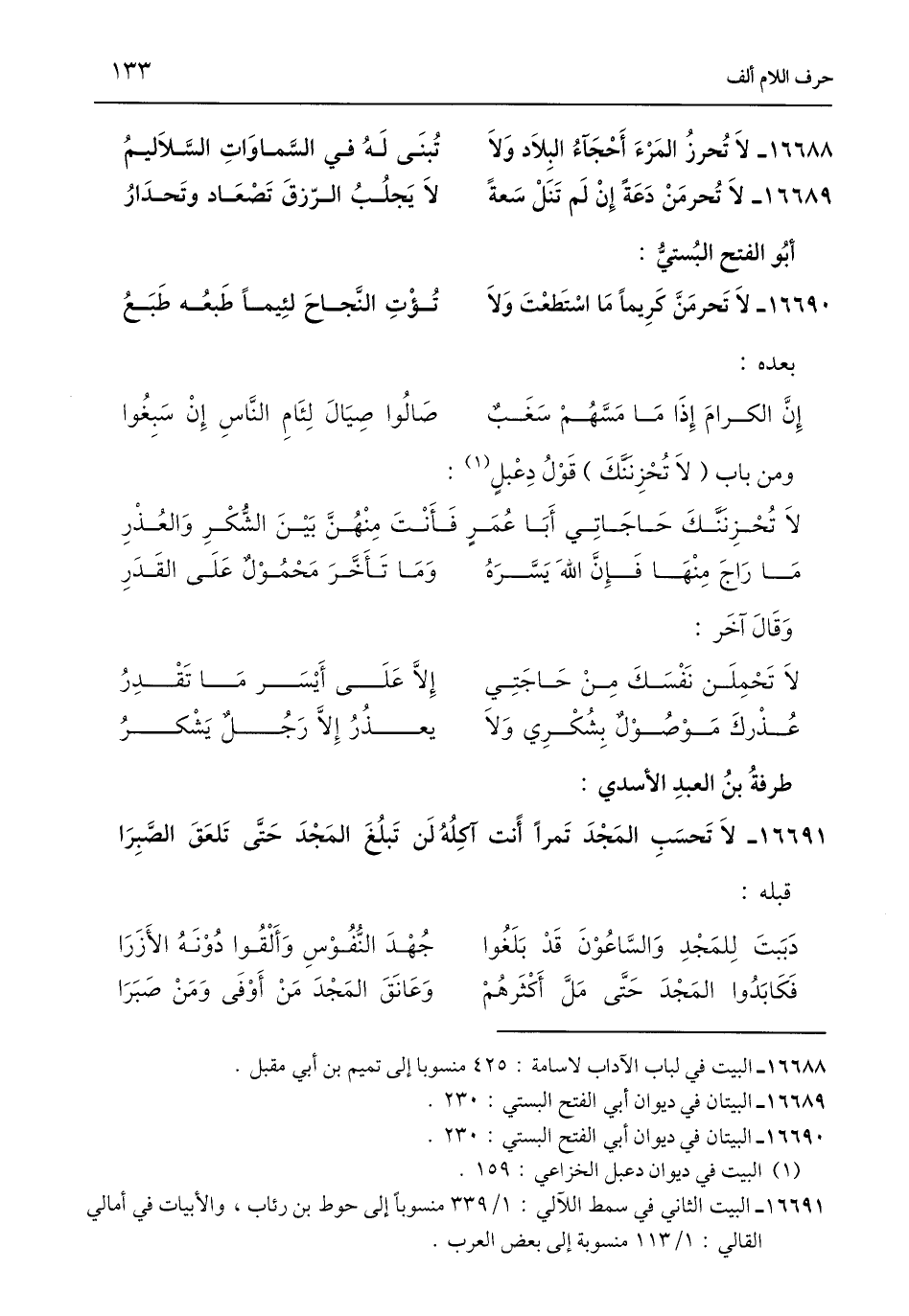 16688 - البيت في لباب الآداب لأسامة: 425 منسوبا إلى تميم بن أبي مقبل.