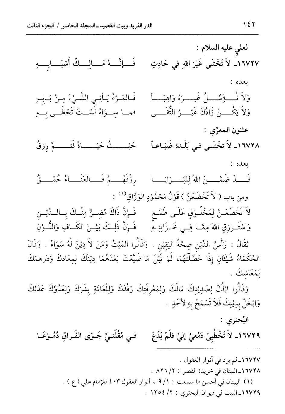 (¬1) البيتان في أحسن ما سمعت: 1/ 9، أنوار العقول 403 للإمام علي (ع).