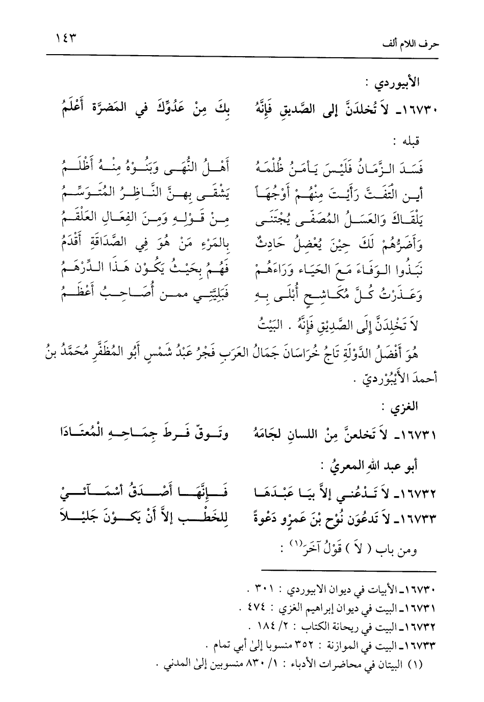 16730 - الأبيات في ديوان الأبيوردي: 301.