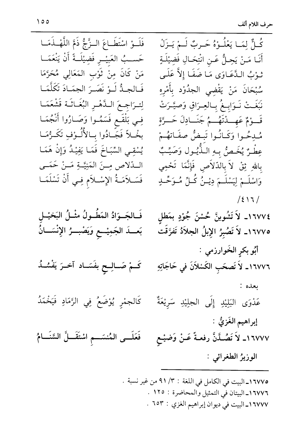 16776 - البيتان في التمثيل والمحاضرة: 125.