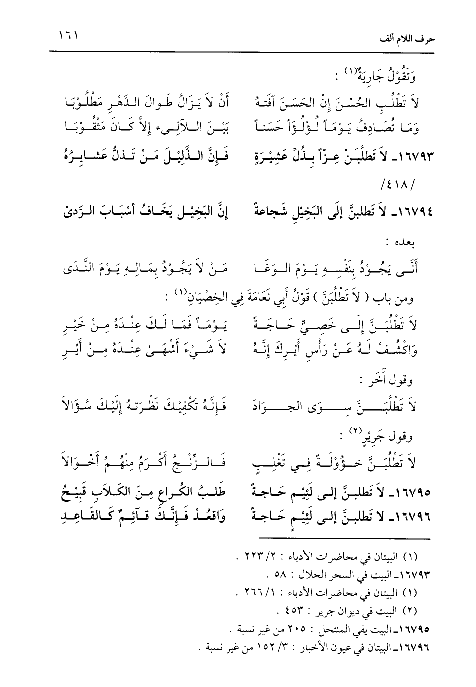 16796 - لا تَطلبنَّ إلى لَئِيْمٍ حَاجةً ... وَاقعُدْ فَإِنَّكَ قآئِمٌ كَالقَاعِدِ