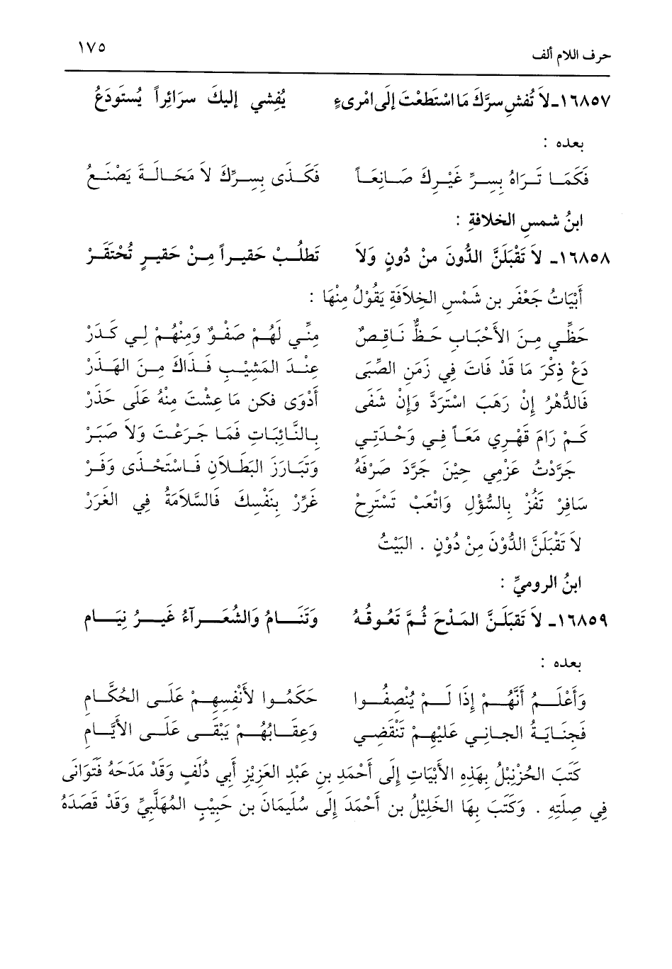 أَبْيَاتُ جَعْفَر بن شَمْسِ الخِلَافَةِ يَقُوْلُ مِنْهَا: