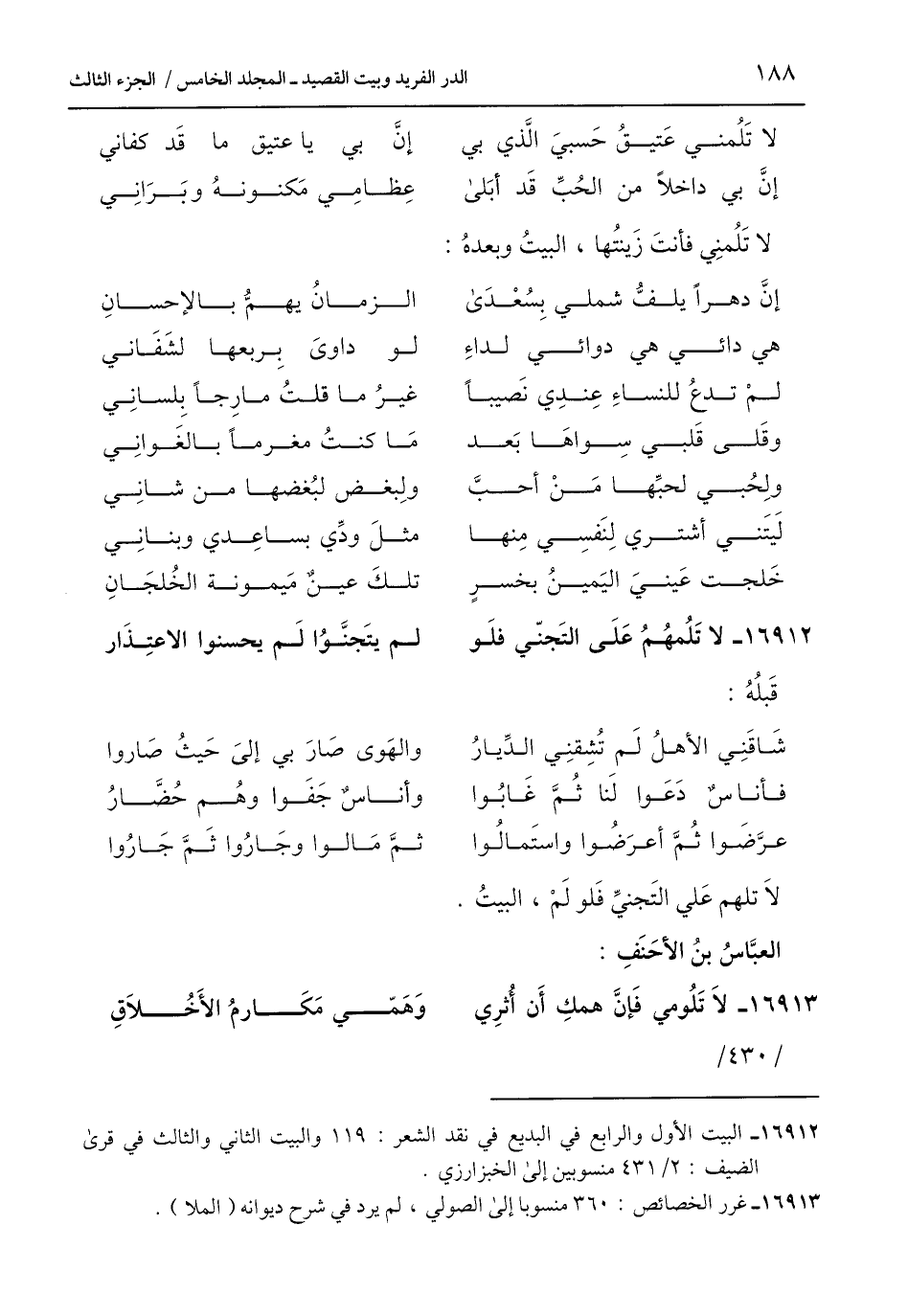 16913 - غرر الخصائص: 360 منسوبا إلى الصولي، لم يرد في شرح ديوانه (الملا).