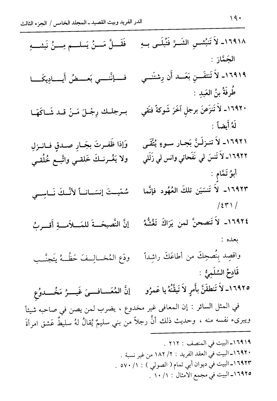 16920 - البيت في العقد الفريد: 2/ 182 من غير نسبة.
