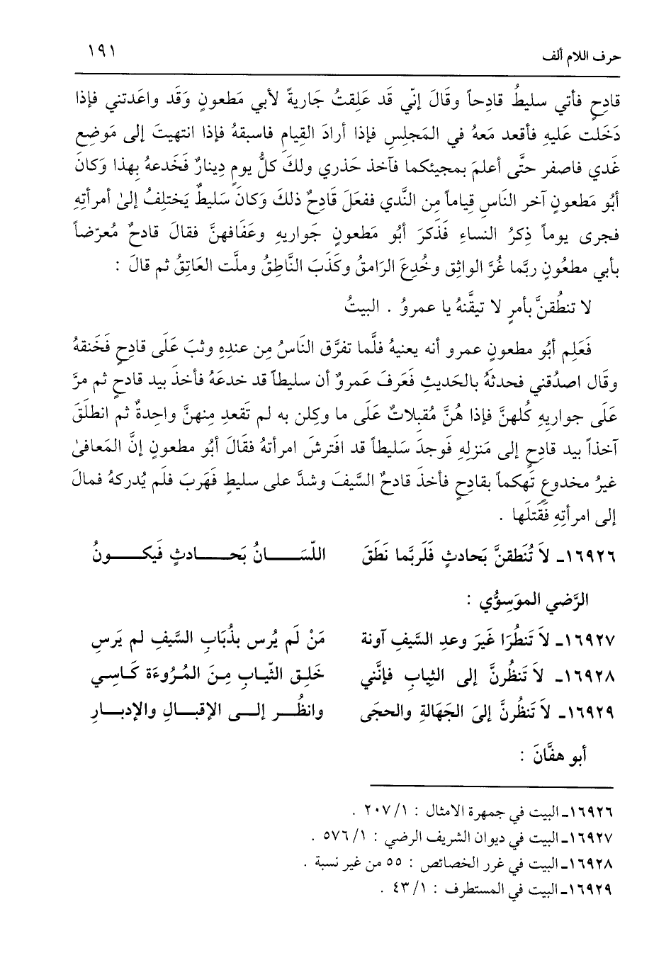 16926 - لَا تُنَطقنَّ بَحادثٍ فَلَربَّما نَطَقَ ... اللّسَانُ بَحادثٍ فَيكونُ