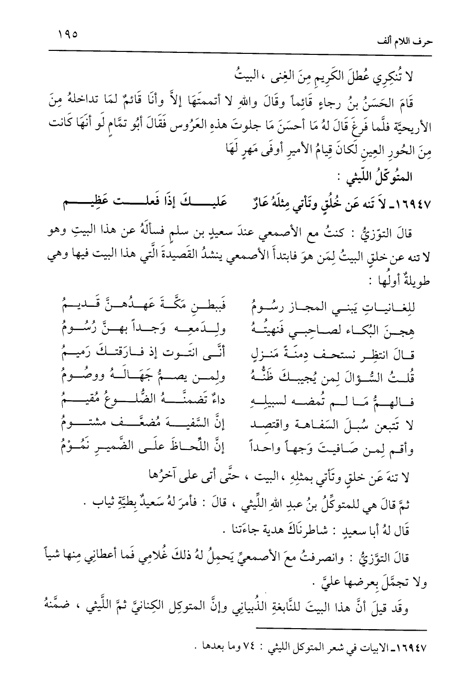 16947 - الأبيات في شعر المتوكل الليثي: 74 وما بعدها.