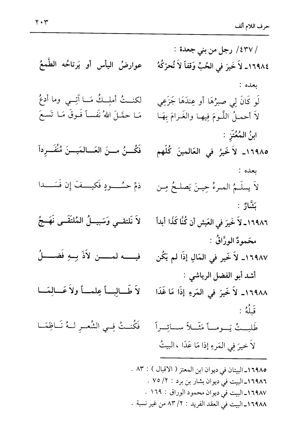 16987 - البيت في ديوان محمود الوراق: 169.