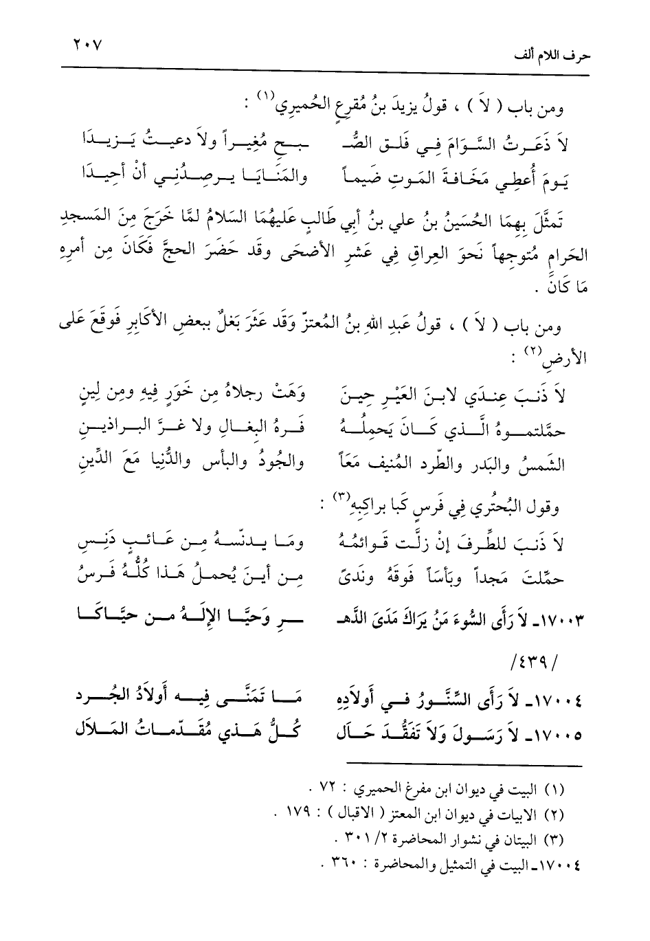ومن باب (لَا)، قولُ عَبدِ اللَّهِ بنُ المُعتزّ وَقَد عَثَرَ بَغلٌ ببعضِ الأكَابِرِ فَوقَعَ عَلى الأرضِ (¬2):